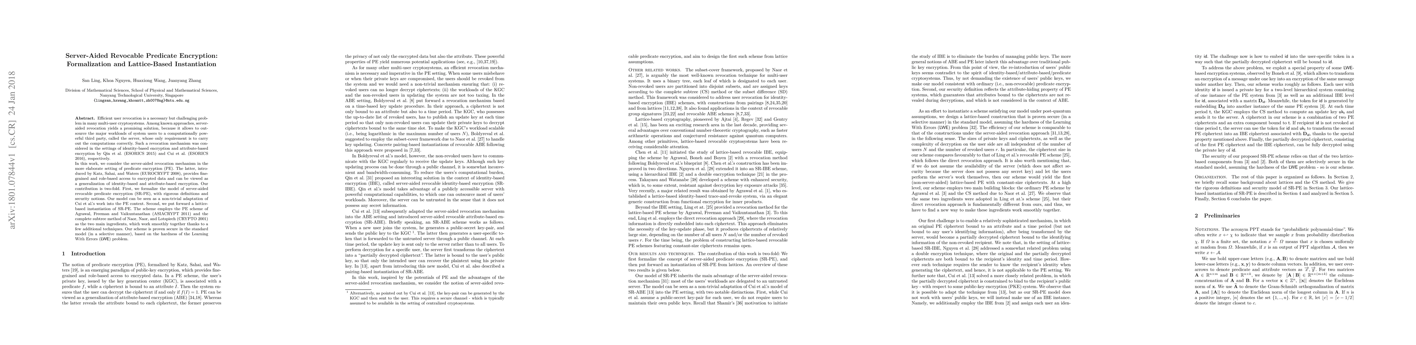 The research employed a combination of theoretical analysis and experimental evaluation to develop and test the proposed server-aided revocable identity-based encryption scheme.