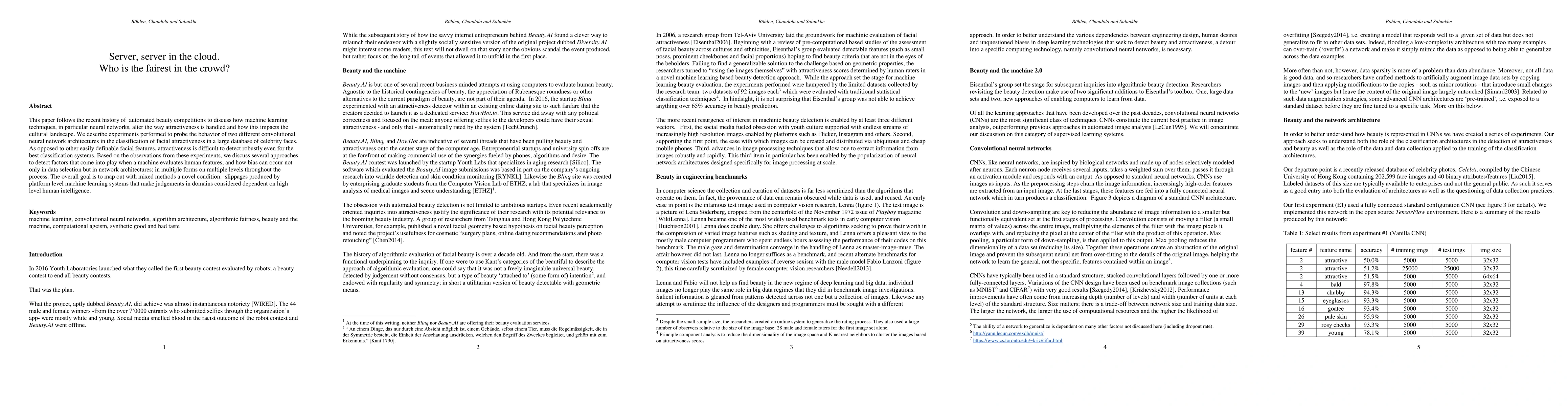 This paper follows the recent history of automated beauty competitions to discuss how machine learning techniques, in particular neural networks, alter the way attractiveness is handled and how this impacts the cultural landscape. We describe experiments performed to probe the behavior of two different convolutional neural network architectures in the classification of facial attractiveness in a large database of celebrity faces. As opposed to other easily definable facial features, attractiveness is difficult to detect robustly even for the best classification systems. Based on the observations from these experiments, we discuss several approaches to detect factors that come into play when a machine evaluates human features, and how bias can occur not only in data selection but in network architectures; in multiple forms on multiple levels throughout the process. The overall goal is to map out with mixed methods a novel condition: slippages produced by platform level machine learning systems that make judgements in domains considered dependent on high level human intelligence.