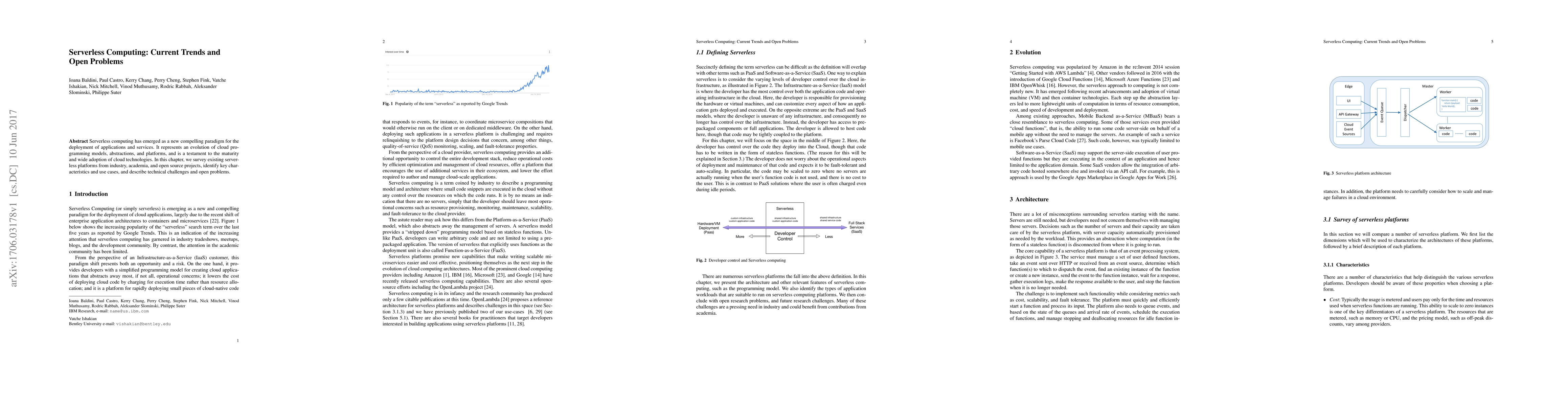 This paper surveys serverless computing platforms, highlighting their characteristics and use cases while identifying technical challenges and open problems that need further research. It aims to provide a comprehensive overview of the current trends in serverless computing and guide future research directions.