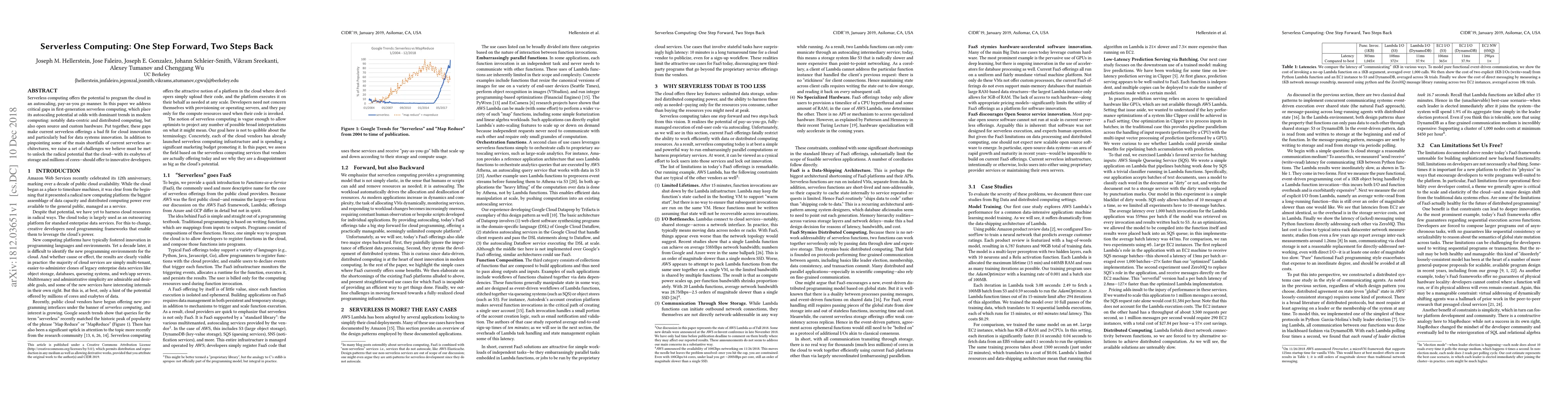 Summary: This paper critiques the limitations of first-generation serverless computing, highlighting its incompatibility with modern data-centric, distributed computing trends and open source initiatives, and suggesting that overcoming these gaps is essential for realizing the cloud's full potential for innovation, especially in data systems.