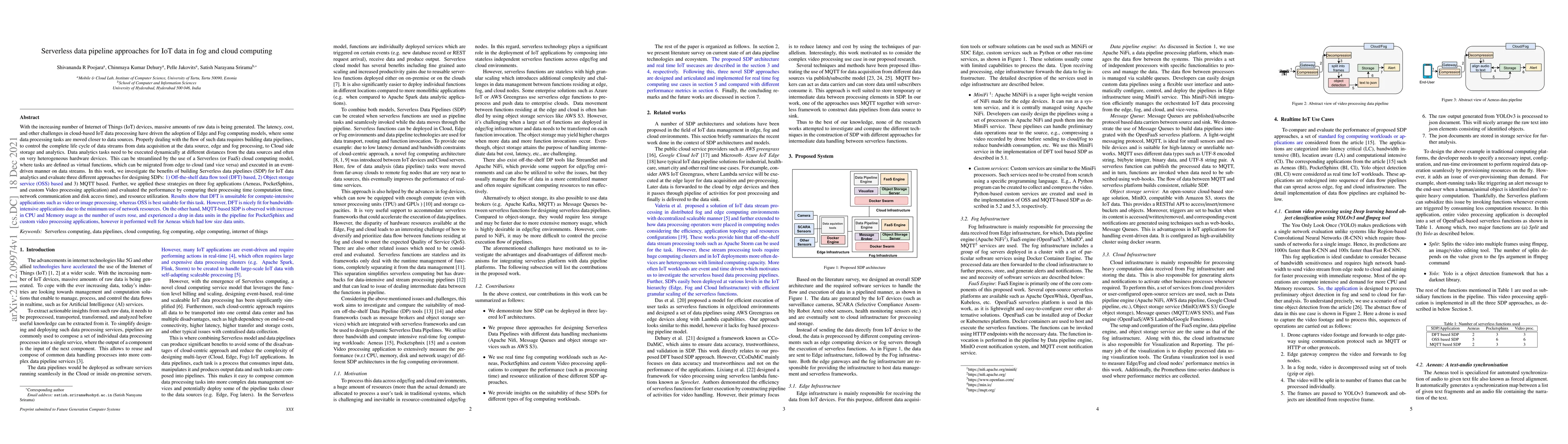 Serverless data pipelines (SDP) for IoT data analytics and evaluate three