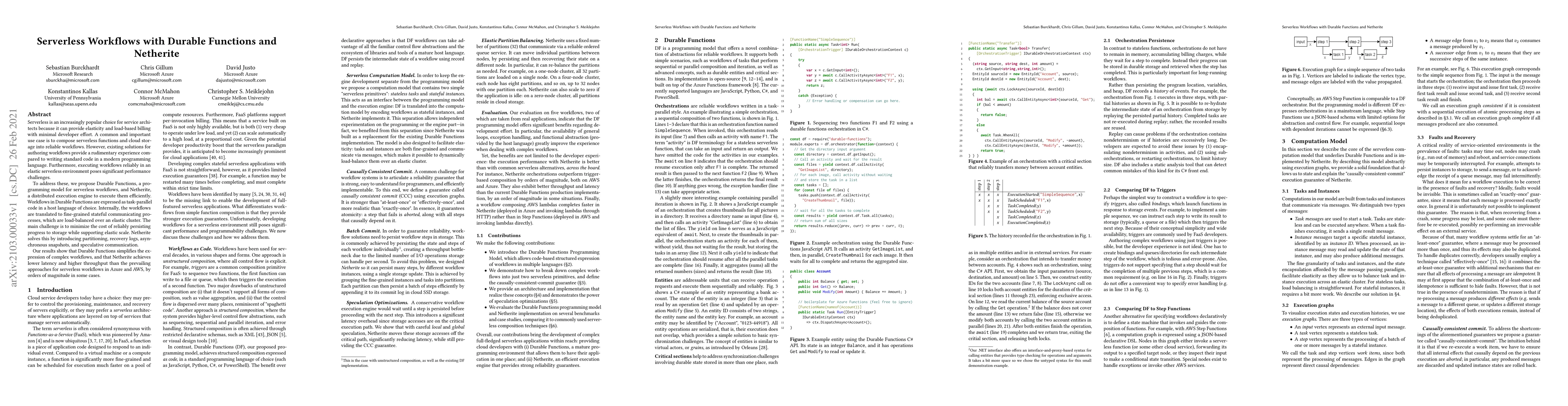 This paper introduces Durable Functions, a programming model for serverless workflows, and Netherite, an execution engine designed to run them efficiently. The study shows that Durable Functions simplifies complex workflows while Netherite achieves significant performance improvements over existing solutions in Azure and AWS.