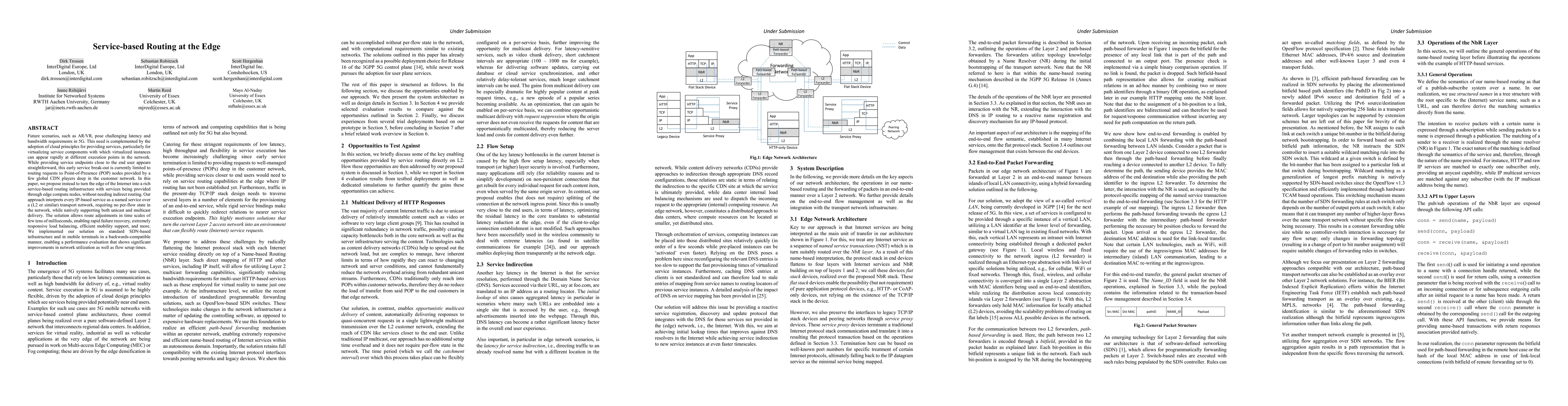 Future scenarios, such as AR/VR, pose challenging latency and bandwidth requirements in 5G. This need is complemented by the adoption of cloud principles for providing services, particularly for virtualizing service components with which virtualized instances can appear rapidly at different execution points in the network. While providing service endpoints close to the end user appears straightforward, this early service break-out is currently limited to routing requests to Point-of-Presence (POP) nodes provided by a few global CDN players deep in the customer network. In this paper, we propose instead to turn the edge of the Internet into a rich service-based routing infrastructure with services being provided through edge compute nodes, without needing indirect routing. Our approach interprets every IP-based service as a named service over a (L2 or similar) transport network, requiring no per-flow state in the network, while natively supporting both unicast and multicast delivery. The solution allows route adjustments in time scales of few tens of milliseconds, enabling rapid failure recovery, extremely responsive load balancing, efficient mobility support, and more. We implemented our solution on standard SDN-based infrastructure and in mobile terminals in a backwards-compatible manner, enabling a performance evaluation that shows significant improvements in network utilization as well as flow setup times.