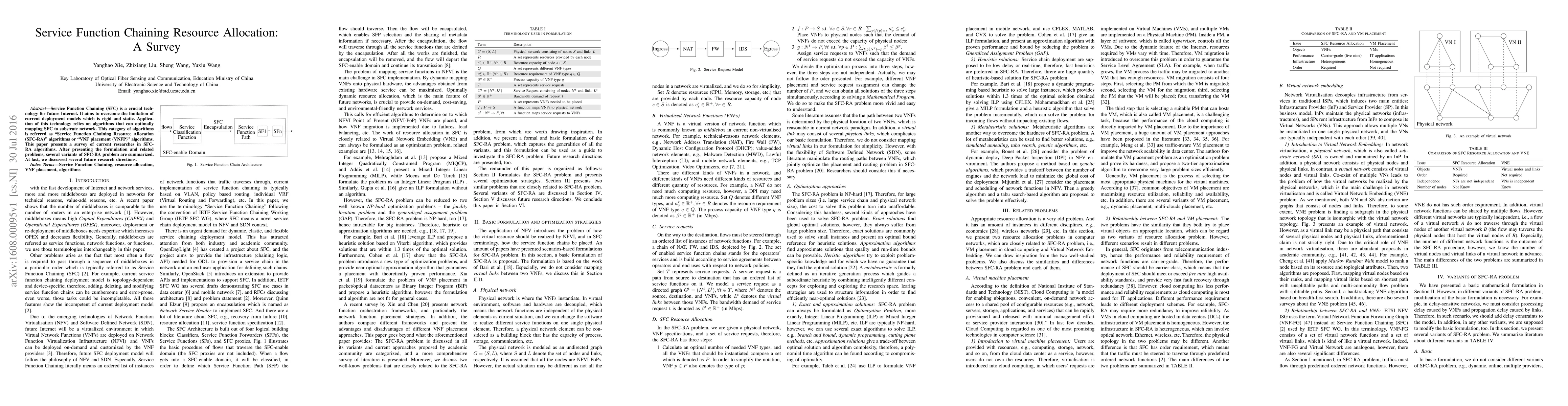 This paper surveys Service Function Chaining Resource Allocation (SFC-RA) algorithms, which optimize the mapping of SFCs to network resources, addressing the limitations of current static deployment models. It summarizes various SFC-RA problem variants and outlines future research directions.