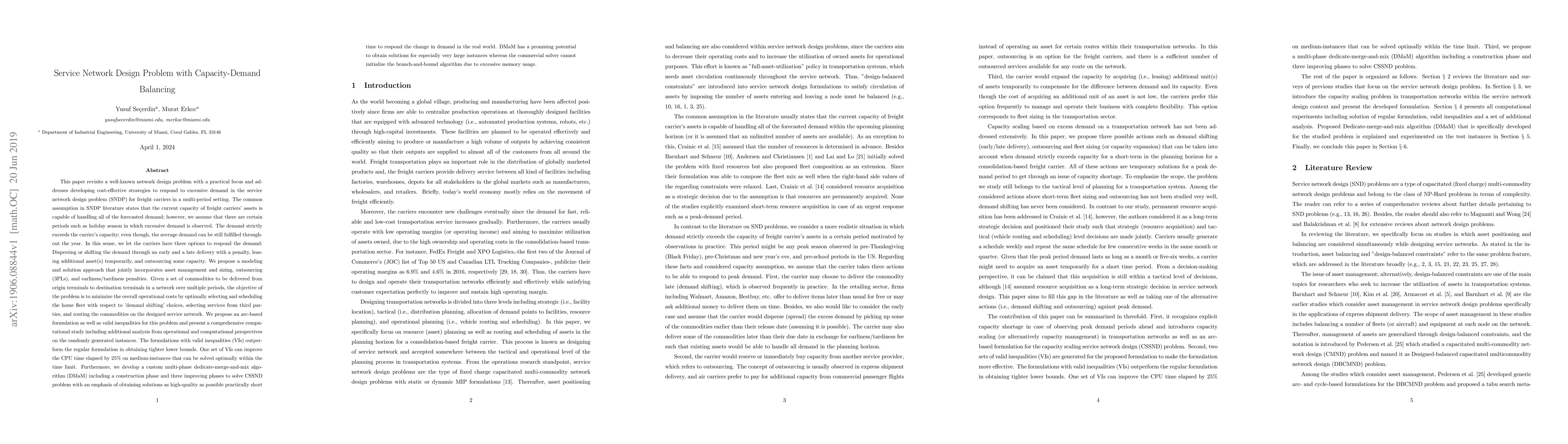 This paper addresses developing cost-effective strategies to respond to excessive demand in the service network design problem in a multi-period setting. The common assumption states that the capacity of freight carriers' assets is capable of handling all of the forecasted demand; however, we assume that there are certain periods such as holiday season in which excessive demand is observed. The demand strictly exceeds the carrier's capacity; even though, the average demand can be still fulfilled throughout the year. In this sense, we let the carrier has three options to respond to the demand: Dispersing the demand with a penalty, leasing additional asset(s) temporarily, and outsourcing some capacity. We propose a modeling and solution approach that jointly incorporates asset management and sizing, outsourcing (3PLs), and earliness/tardiness penalties. The objective is to minimize the overall operational costs by optimally selecting and scheduling the home fleet with respect to 'demand shifting' choices, selecting services from third parties, and routing the commodities on the designed network. We propose an arc-based formulation as well as valid inequalities and present a comprehensive computational study on the randomly generated instances. The formulations with valid inequalities (VIs) outperform the regular formulation in obtaining tighter lower bounds. One set of VIs can improve the CPU time elapsed by 25% on medium-instances that can be solved optimally within the time limit. Furthermore, we develop a custom multi-phase dedicate-merge-and-mix algorithm (DMaM) to solve CSSND problem with an emphasis of obtaining solutions as high-quality as possible practically in a short time in the real world. DMaM has a promising potential to obtain solutions especially for very large instances whereas the commercial solver cannot initialize the B&B algorithm due to excessive memory usage.
