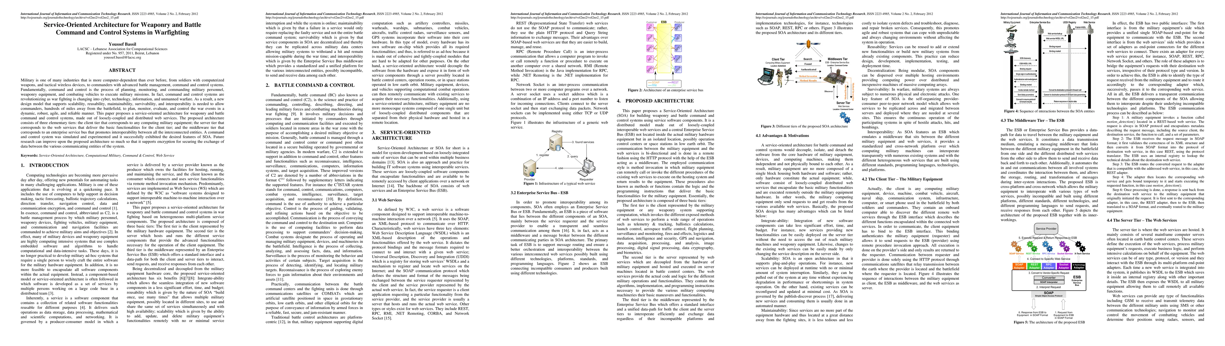 The proposed service-oriented architecture provides a novel approach to building battle command and control systems using distributed software components called web services.