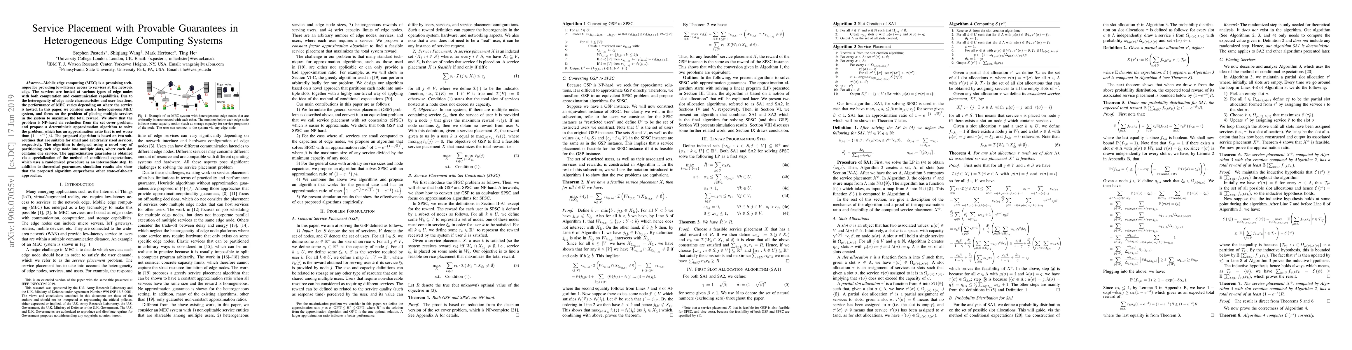 This paper presents a deterministic approximation algorithm for optimally placing multiple services in heterogeneous edge computing systems to maximize total reward. The problem is proven to be NP-hard with an approximation ratio no worse than (1-e^-1)/4. The algorithm, utilizing two sub-routines, partitions edge nodes into slots for service placement, outperforming existing methods in simulations, and providing theoretical guarantees.