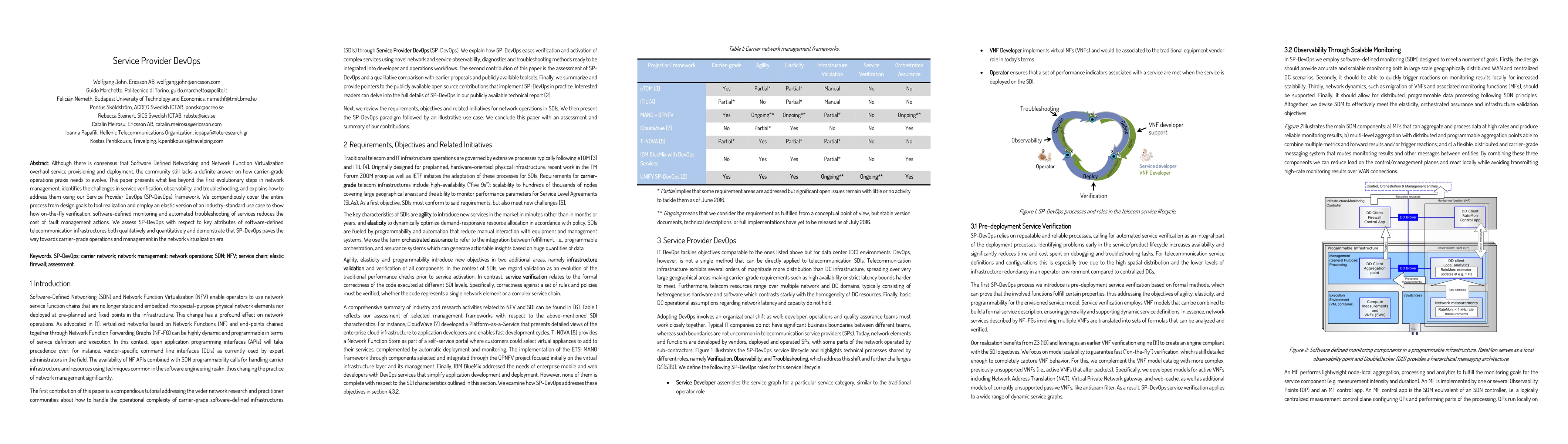 This paper explores the evolution of carrier-grade operations in network management through the introduction of Service Provider DevOps (SP-DevOps), addressing challenges in service verification, observability, and troubleshooting. It demonstrates SP-DevOps's effectiveness in reducing fault management costs via on-the-fly verification and automated troubleshooting.