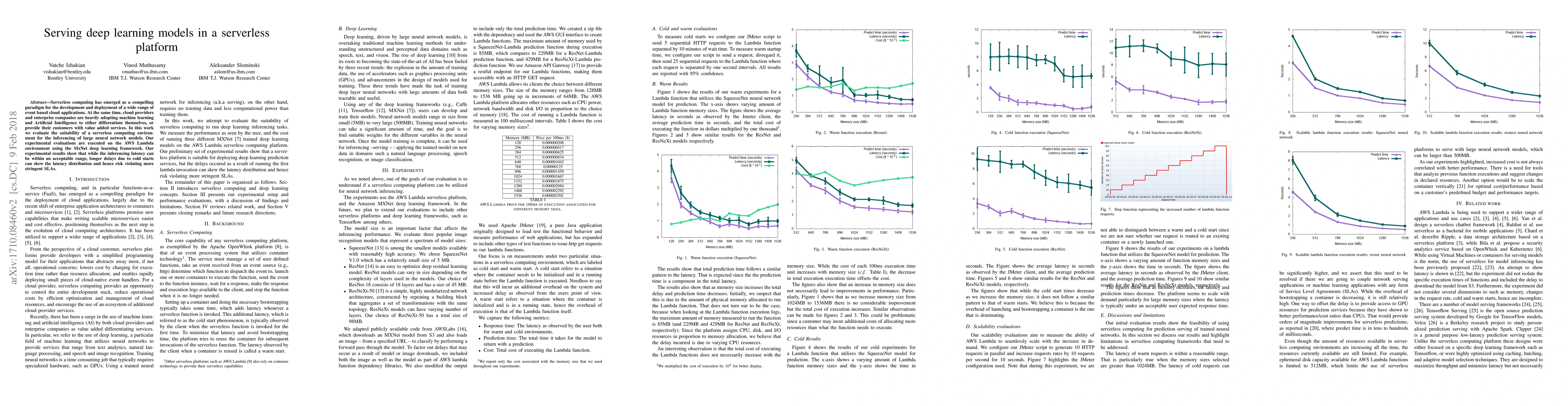This paper evaluates the deployment of deep learning models on AWS Lambda, finding acceptable inferencing latency but highlighting significant cold start delays that can violate SLAs. Experiments use the MxNet framework to assess serverless computing's suitability for large neural networks.