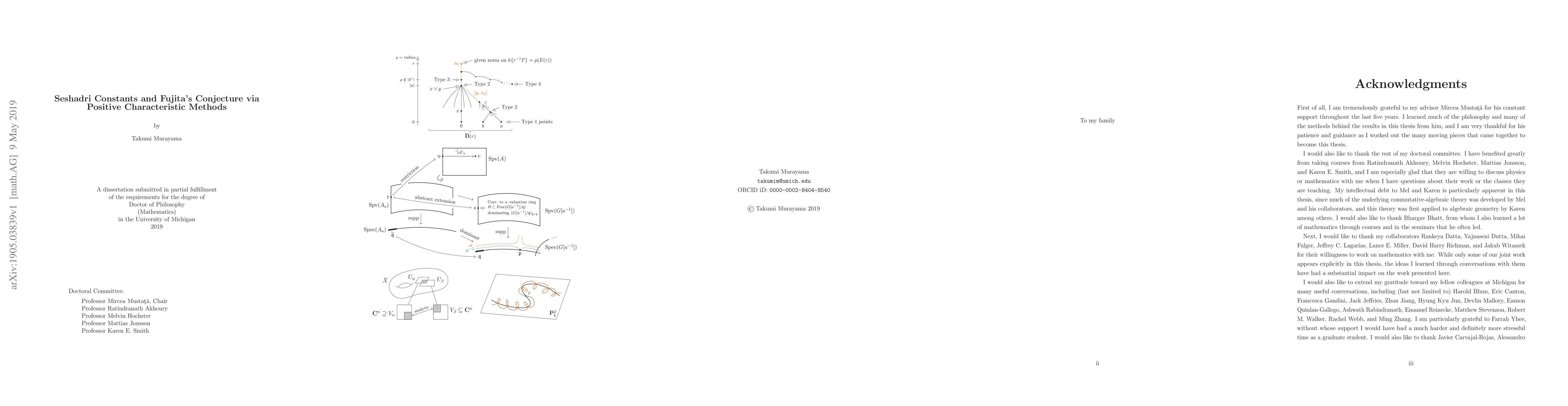 This paper explores Fujita's conjecture using Seshadri constants and positive characteristic methods, providing new results for complex varieties with singularities and recovering known results over the complex numbers without relying on vanishing theorems. It employs techniques related to Frobenius-Seshadri constants to characterize projective space in positive characteristic.