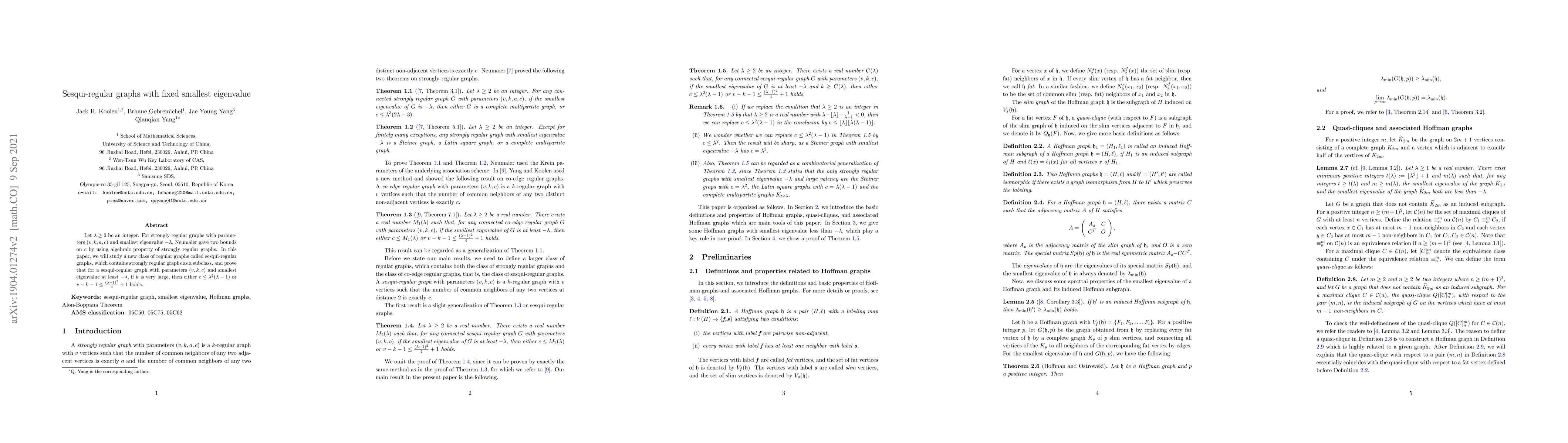 Let $\lambda\geq2$ be an integer. For strongly regular graphs with parameters $(v, k, a,c)$ and smallest eigenvalue $-\lambda$, Neumaier gave two bounds on $c$ by using algebraic property of strongly regular graphs. In this paper, we will study a new class of regular graphs called sesqui-regular graphs, which contains strongly regular graphs as a subclass, and prove that for a sesqui-regular graph with parameters $(v,k,c)$ and smallest eigenvalue at least $-\lambda$, if $k$ is very large, then either $c \leq \lambda^2(\lambda -1)$ or $v-k-1 \leq \frac{(\lambda-1)^2}{4} + 1$ holds.