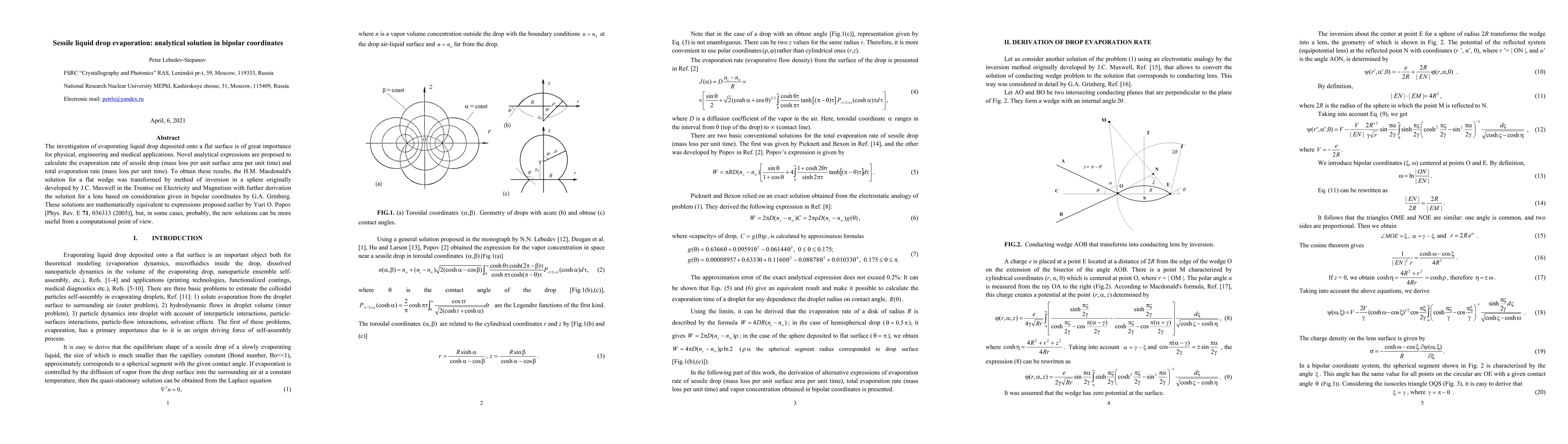 The paper presents a new approach to calculating evaporation rates using bipolar coordinates and the inversion method, providing simplified analytical expressions compared to previous work.