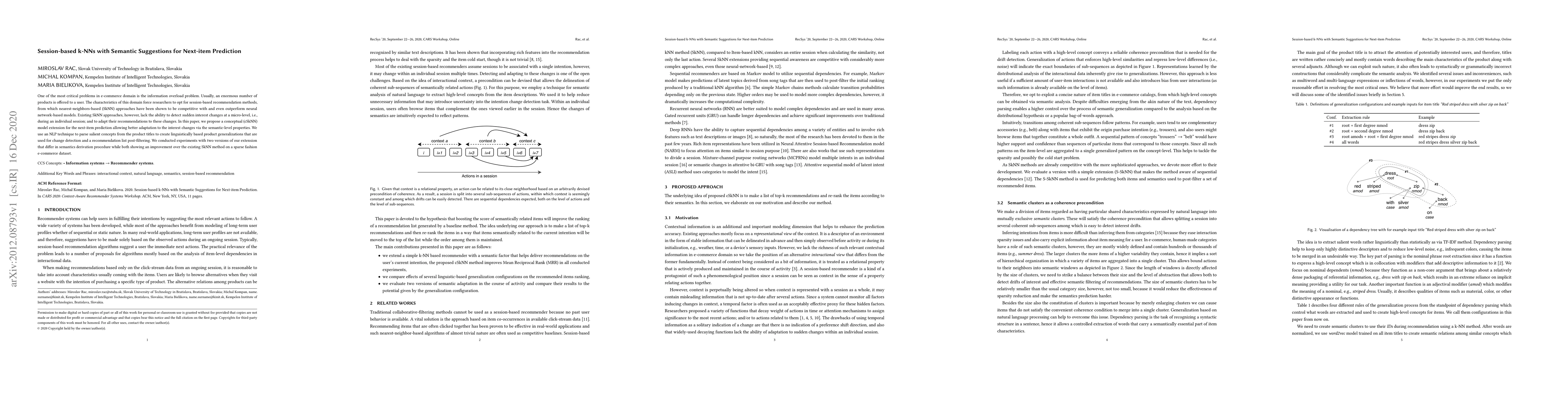 A new session-based recommendation model extends nearest-neighbors approaches with semantic suggestions to improve adaptation to user interest changes during individual sessions.