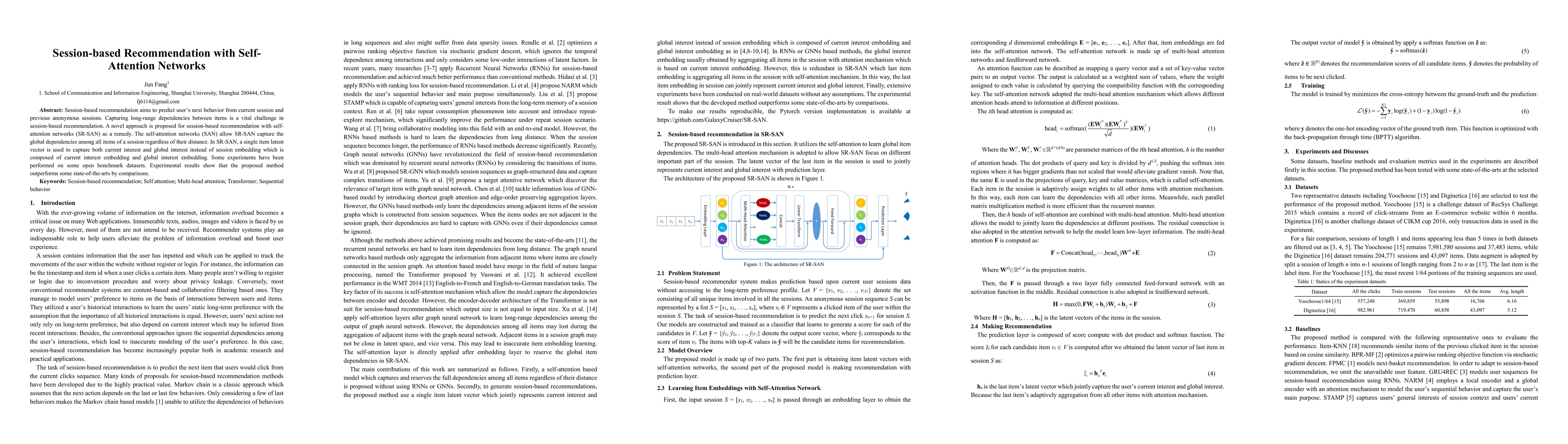 The paper proposes a novel session-based recommendation method using self-attention networks (SR-SAN) to capture long-range dependencies in user sessions. The method outperforms state-of-the-art techniques by leveraging a single item latent vector to capture both current and global interests, rather than using separate session embeddings.