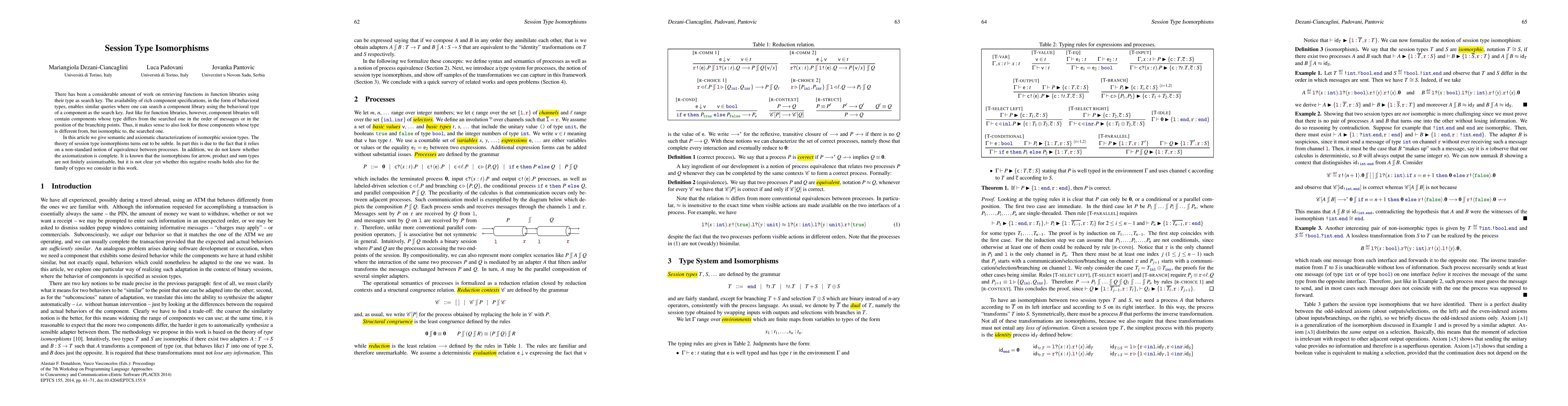 This paper explores the concept of session type isomorphisms for component libraries, where components are searched based on behavioral types rather than just structural types. It provides semantic and axiomatic characterizations of these isomorphisms, noting the complexity and non-standard equivalence between processes involved, and raises questions about the completeness and finite axiomatizability of the theory.
