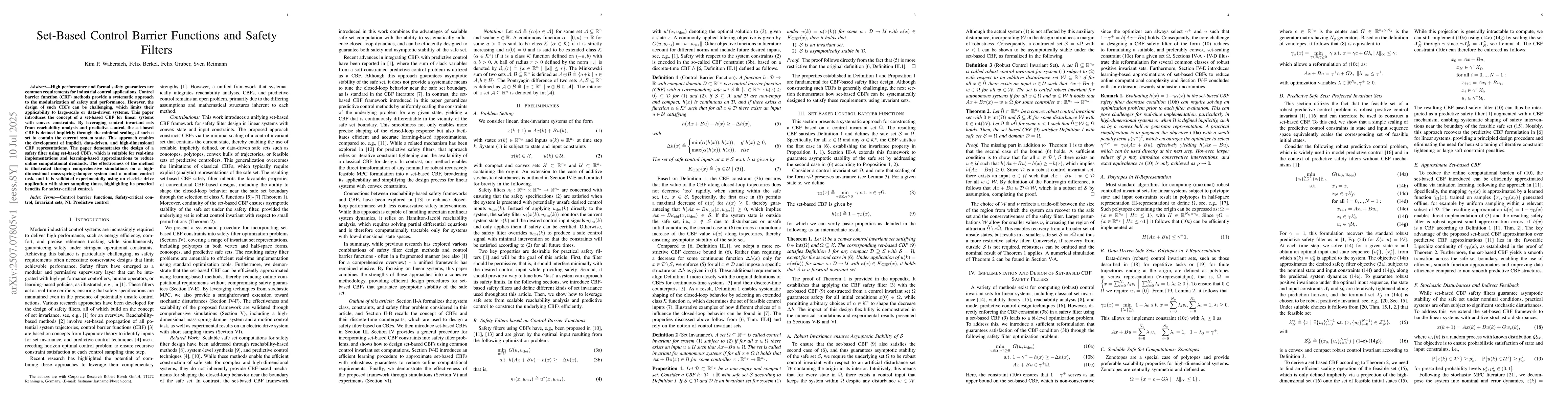 High performance and formal safety guarantees are common requirements for industrial control applications. Control barrier function (CBF) methods provide a systematic approach to the modularization of safety and performance. However, the design of such CBFs can be challenging, which limits their applicability to large-scale or data-driven systems. This paper introduces the concept of a set-based CBF for linear systems with convex constraints. By leveraging control invariant sets from reachability analysis and predictive control, the set-based CBF is defined implicitly through the minimal scaling of such a set to contain the current system state. This approach enables the development of implicit, data-driven, and high-dimensional CBF representations. The paper demonstrates the design of a safety filter using set-based CBFs, which is suitable for real-time implementations and learning-based approximations to reduce online computational demands. The effectiveness of the method is illustrated through comprehensive simulations on a high-dimensional mass-spring-damper system and a motion control task, and it is validated experimentally using an electric drive application with short sampling times, highlighting its practical benefits for safety-critical control.
