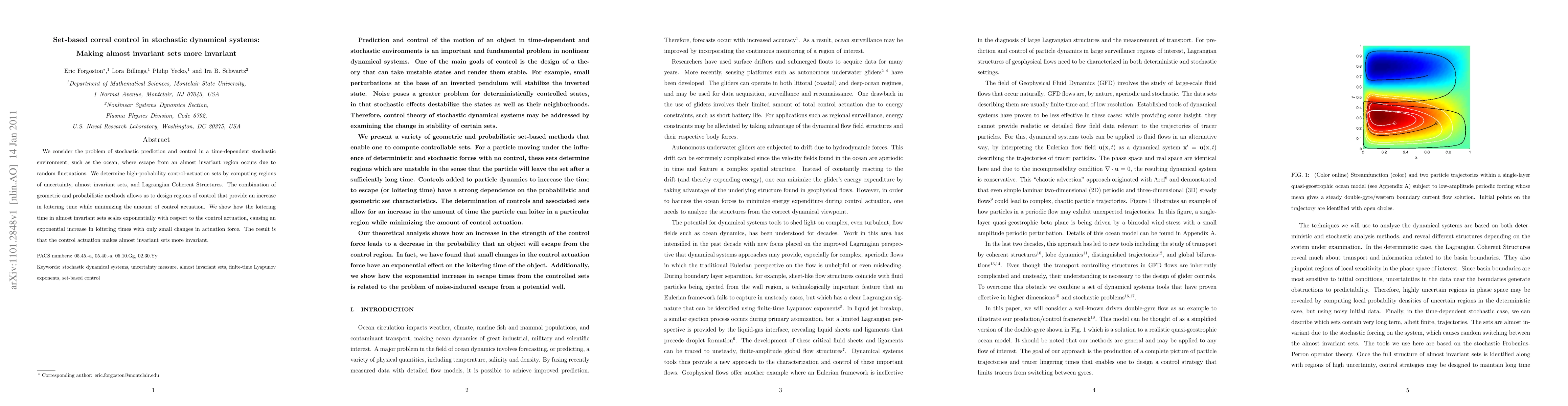This paper develops a method for enhancing the invariance of almost invariant sets in stochastic dynamical systems, such as ocean environments, by combining geometric and probabilistic techniques to design control regions that significantly increase loitering time with minimal control actuation. The approach results in an exponential increase in loitering time with small changes in control force, effectively making these sets more invariant.