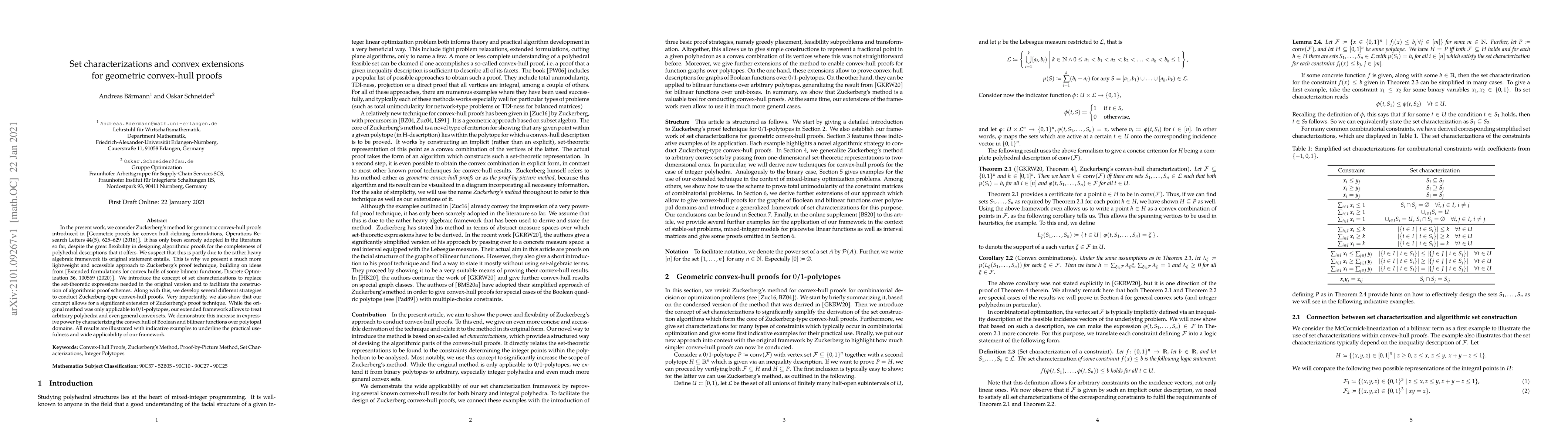 In the present work, we consider Zuckerberg's method for geometric convex-hull proofs introduced in [Geometric proofs for convex hull defining formulations, Operations Research Letters 44(5), 625-629 (2016)]. It has only been scarcely adopted in the literature so far, despite the great flexibility in designing algorithmic proofs for the completeness of polyhedral descriptions that it offers. We suspect that this is partly due to the rather heavy algebraic framework its original statement entails. This is why we present a much more lightweight and accessible approach to Zuckerberg's proof technique, building on ideas from [Extended formulations for convex hulls of some bilinear functions, Discrete Optimization 36, 100569 (2020)]. We introduce the concept of set characterizations to replace the set-theoretic expressions needed in the original version and to facilitate the construction of algorithmic proof schemes. Along with this, we develop several different strategies to conduct Zuckerberg-type convex-hull proofs. Very importantly, we also show that our concept allows for a significant extension of Zuckerberg's proof technique. While the original method was only applicable to 0/1-polytopes, our extended framework allows to treat arbitrary polyhedra and even general convex sets. We demonstrate this increase in expressive power by characterizing the convex hull of Boolean and bilinear functions over polytopal domains. All results are illustrated with indicative examples to underline the practical usefulness and wide applicability of our framework.
