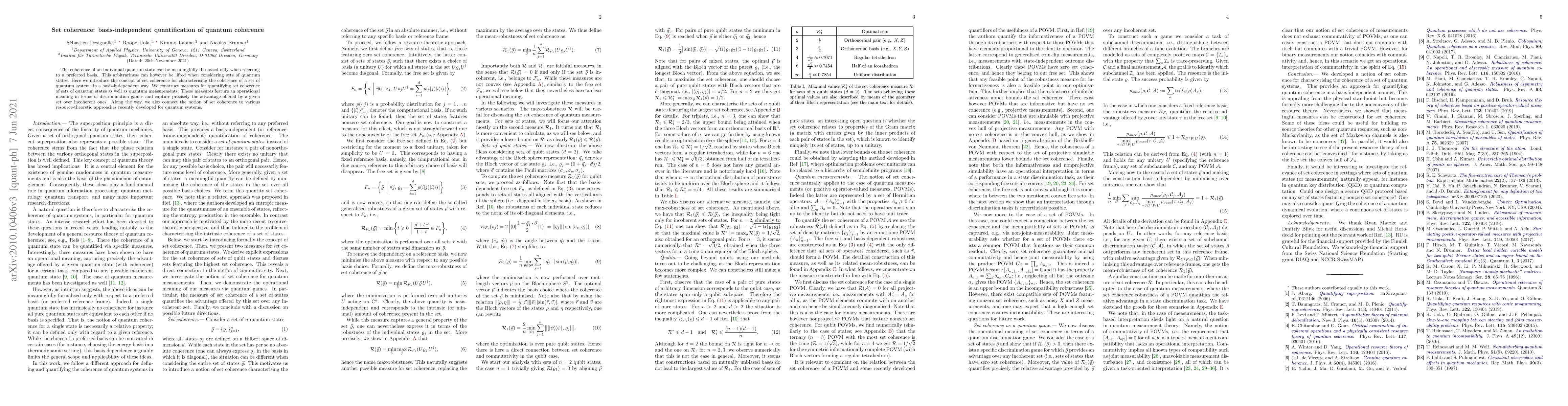 The coherence of an individual quantum state can be meaningfully discussed only when referring to a preferred basis. This arbitrariness can however be lifted when considering sets of quantum states. Here we introduce the concept of set coherence for characterising the coherence of a set of quantum systems in a basis-independent way. We construct measures for quantifying set coherence of sets of quantum states as well as quantum measurements. These measures feature an operational meaning in terms of discrimination games and capture precisely the advantage offered by a given set over incoherent ones. Along the way, we also connect the notion of set coherence to various resource-theoretic approaches recently developed for quantum systems.