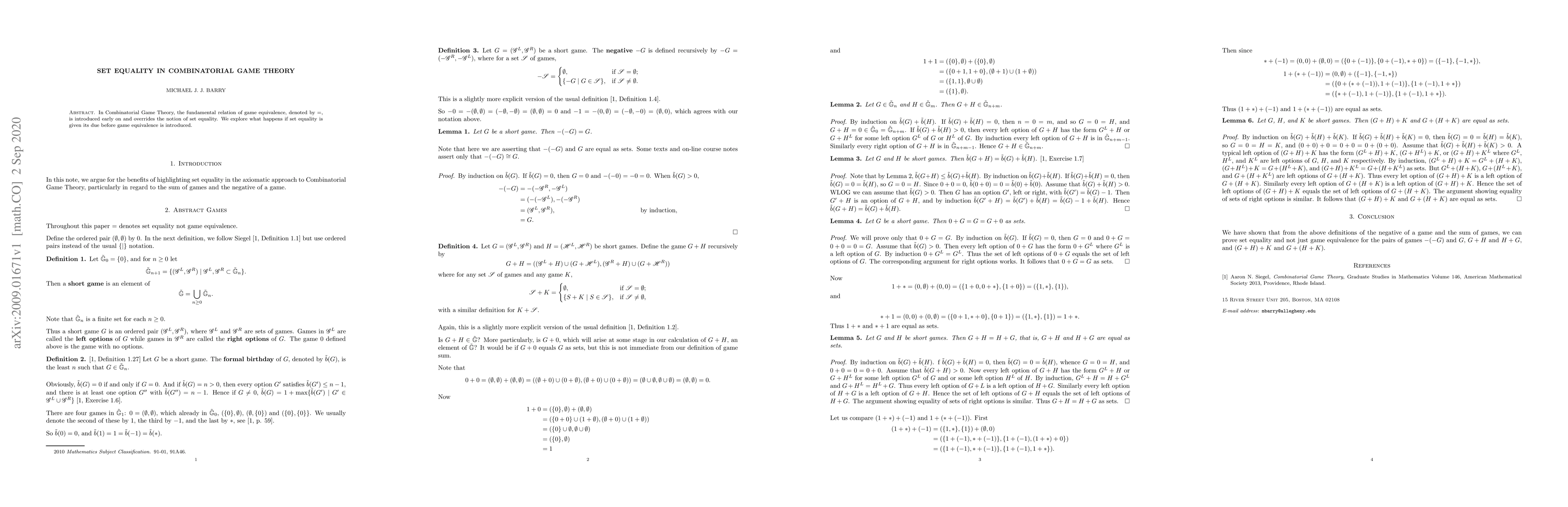 In Combinatorial Game Theory, the fundamental relation of game equivalence, denoted by $=$, is introduced early on and overrides the notion of set equality. We explore what happens if set equality is given its due before game equivalence is introduced.