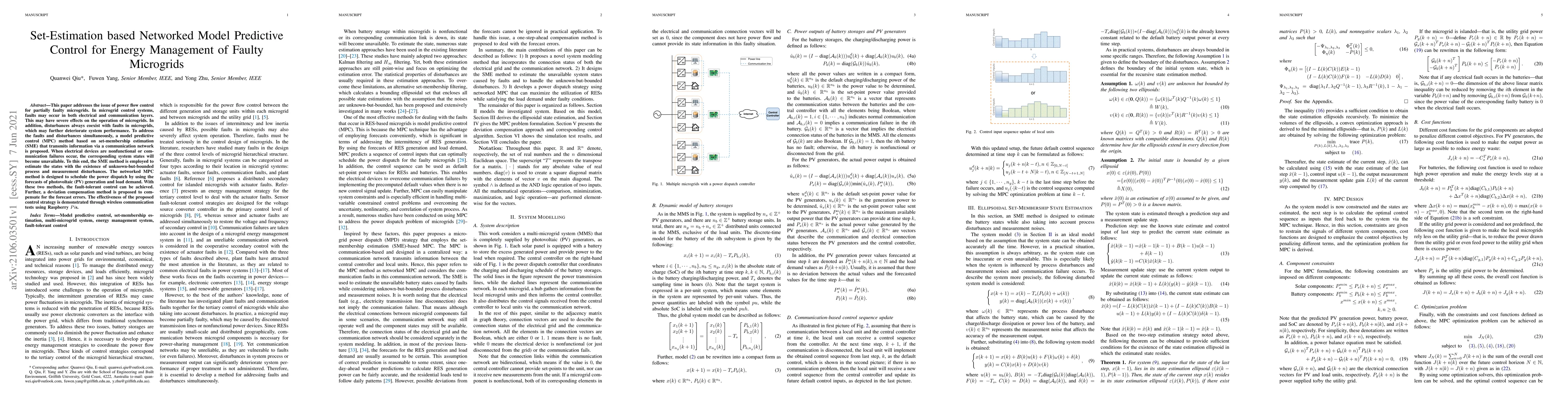 This paper proposes a set-estimation based networked model predictive control (MPC) method for managing energy in partially faulty microgrids, addressing both electrical and communication faults while compensating for disturbances. The set-membership estimation (SME) is used to estimate system states, and a networked MPC schedules power dispatch, achieving fault-tolerant control validated through Raspberry Pi tests.
