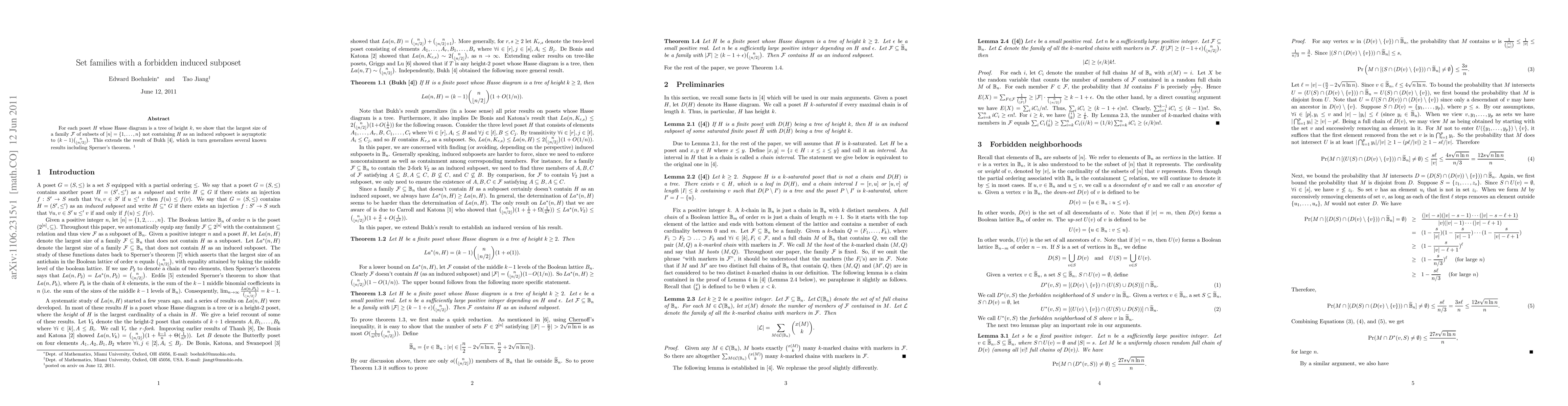 This paper establishes that for any poset $H$ with a tree-like Hasse diagram of height $k$, the largest size of a subset family $\cF$ of $[n]$ avoiding $H$ as an induced subposet is asymptotically $(k-1){n\choose \fl{n/2}}$, extending Bukh's result and generalizing Sperner's theorem.