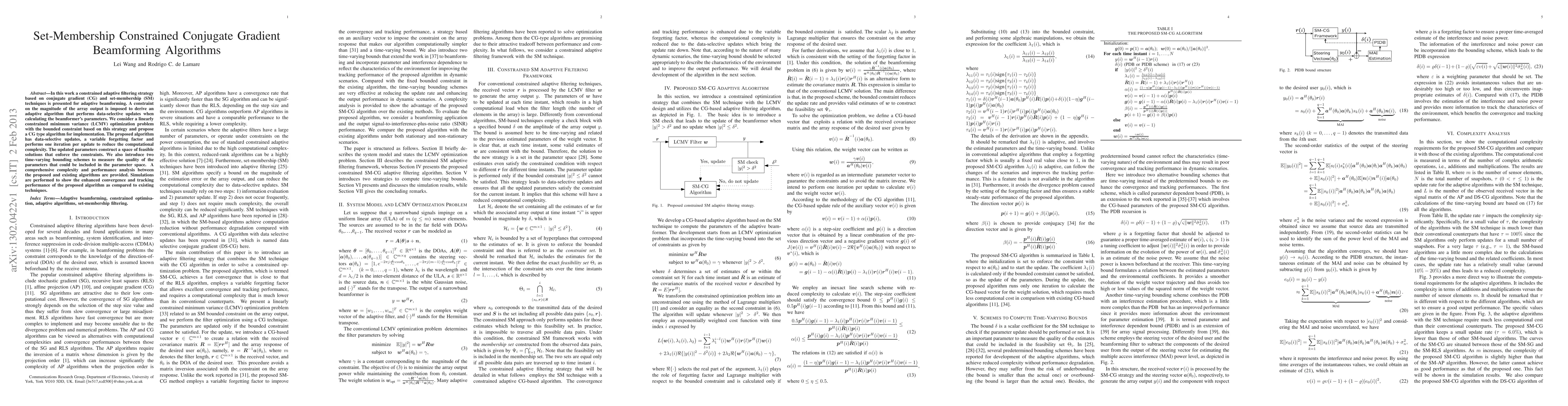 In this work a constrained adaptive filtering strategy based on conjugate gradient (CG) and set-membership (SM) techniques is presented for adaptive beamforming. A constraint on the magnitude of the array output is imposed to derive an adaptive algorithm that performs data-selective updates when calculating the beamformer's parameters. We consider a linearly constrained minimum variance (LCMV) optimization problem with the bounded constraint based on this strategy and propose a CG type algorithm for implementation. The proposed algorithm has data-selective updates, a variable forgetting factor and performs one iteration per update to reduce the computational complexity. The updated parameters construct a space of feasible solutions that enforce the constraints. We also introduce two time-varying bounding schemes to measure the quality of the parameters that could be included in the parameter space. A comprehensive complexity and performance analysis between the proposed and existing algorithms are provided. Simulations are performed to show the enhanced convergence and tracking performance of the proposed algorithm as compared to existing techniques.