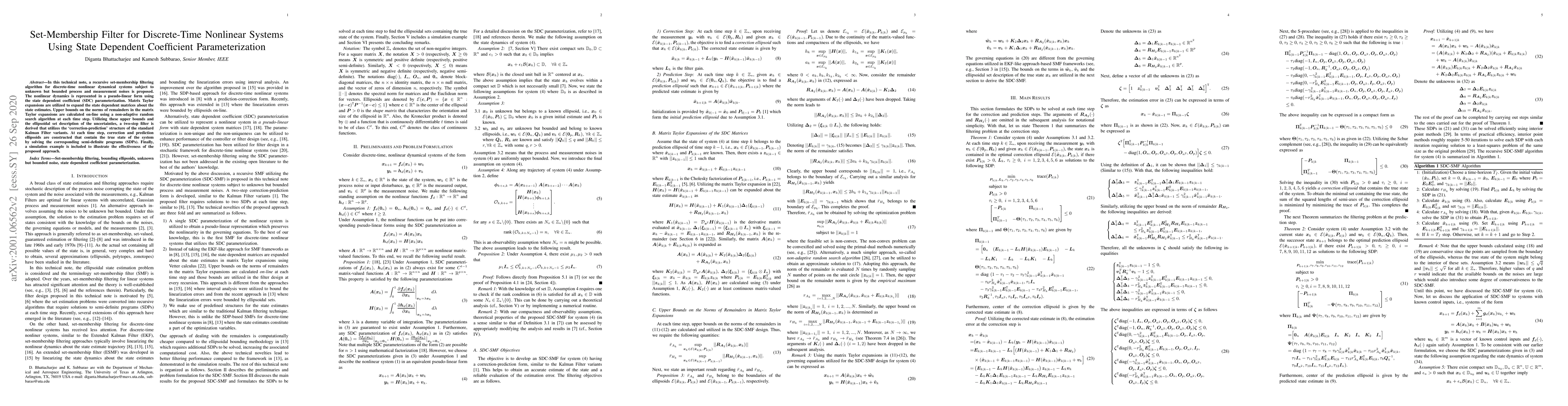 This paper proposes a recursive set-membership filtering algorithm for discrete-time nonlinear systems using state-dependent coefficient parameterization. The method constructs correction and prediction ellipsoids to contain the true state by solving semi-definite programs, demonstrating effectiveness through a simulation example.