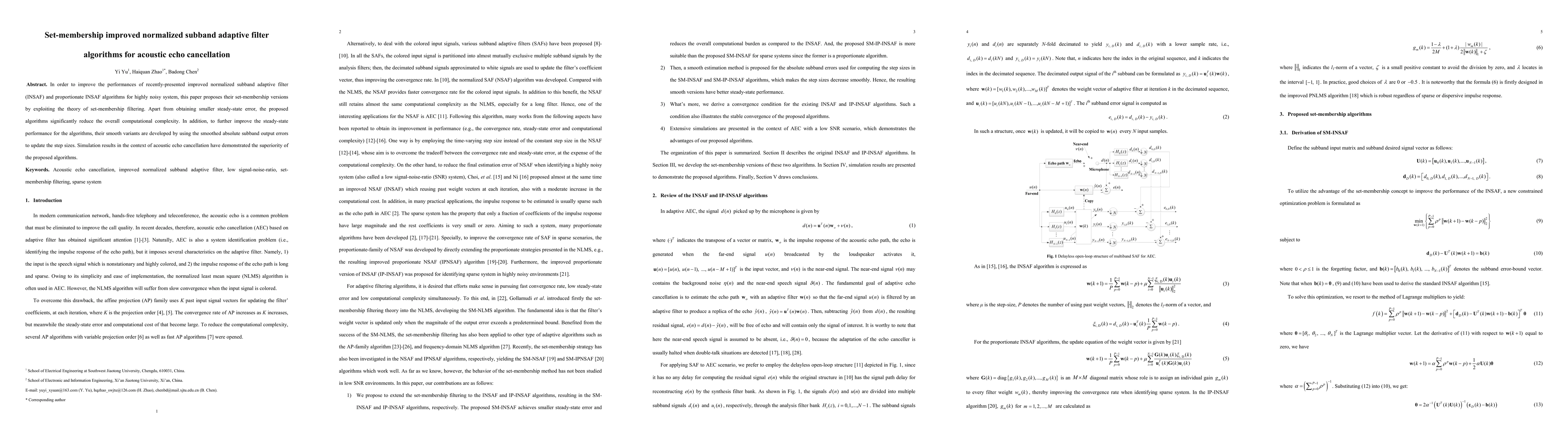 This paper proposes set-membership versions of improved normalized subband adaptive filters to reduce steady-state error and computational complexity for acoustic echo cancellation, with additional smooth variants enhancing performance. Simulation results show superior performance over existing algorithms.