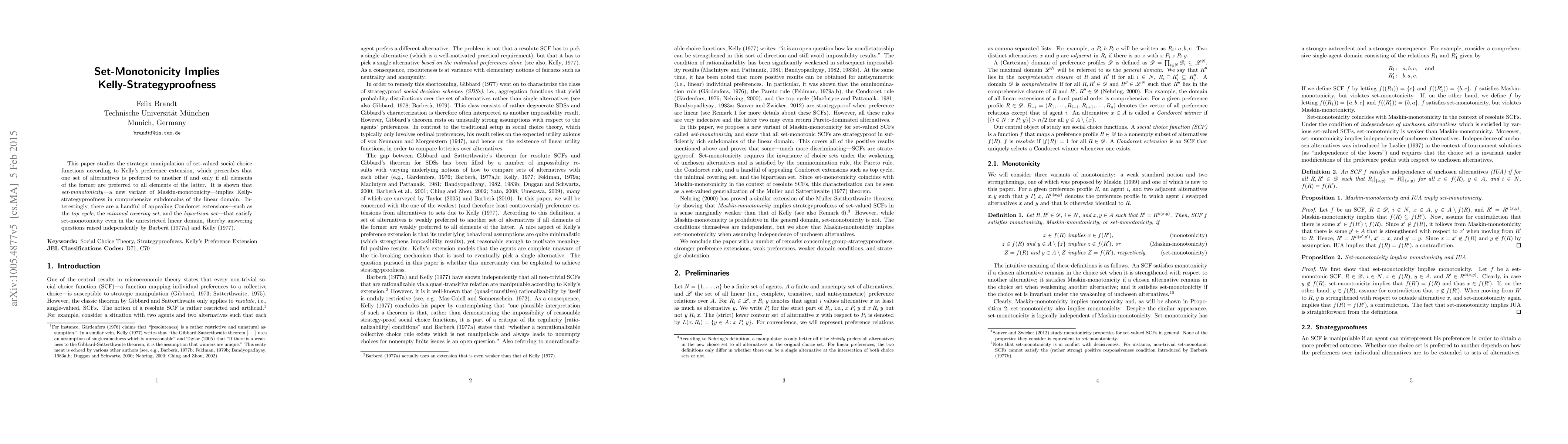 This paper studies the strategic manipulation of set-valued social choice functions according to Kelly's preference extension, which prescribes that one set of alternatives is preferred to another if and only if all elements of the former are preferred to all elements of the latter. It is shown that set-monotonicity---a new variant of Maskin-monotonicity---implies Kelly-strategyproofness in comprehensive subdomains of the linear domain. Interestingly, there are a handful of appealing Condorcet extensions---such as the top cycle, the minimal covering set, and the bipartisan set---that satisfy set-monotonicity even in the unrestricted linear domain, thereby answering questions raised independently by Barber\`a (1977) and Kelly (1977).