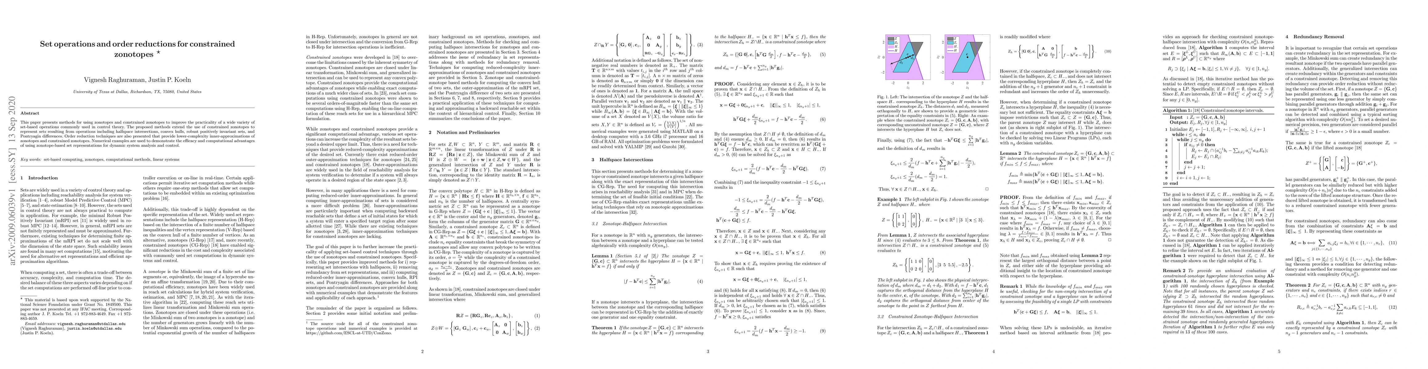 This paper introduces methods for using zonotopes and constrained zonotopes to enhance set operations in control theory, including intersections, convex hulls, and robust positively invariant sets, alongside order reduction techniques for lower-complexity approximations, showcasing their benefits through numerical examples.
