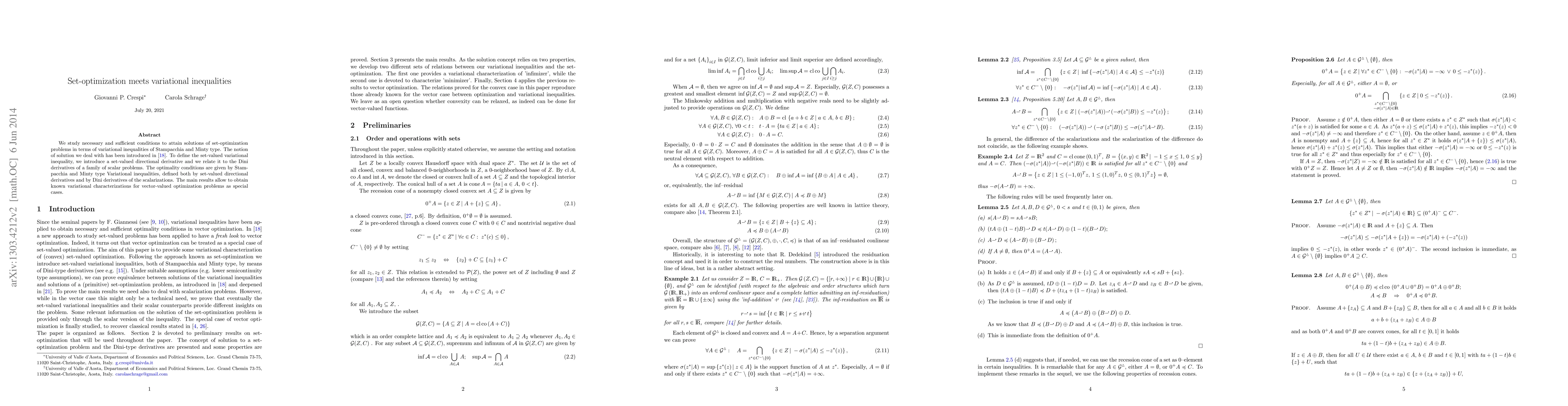 This paper explores necessary and sufficient conditions for solutions of set-optimization problems through variational inequalities of Stampacchia and Minty types. It introduces a set-valued directional derivative to define the set-valued variational inequality, linking it to Dini derivatives of scalarized problems, and provides optimality conditions in terms of these variational inequalities.
