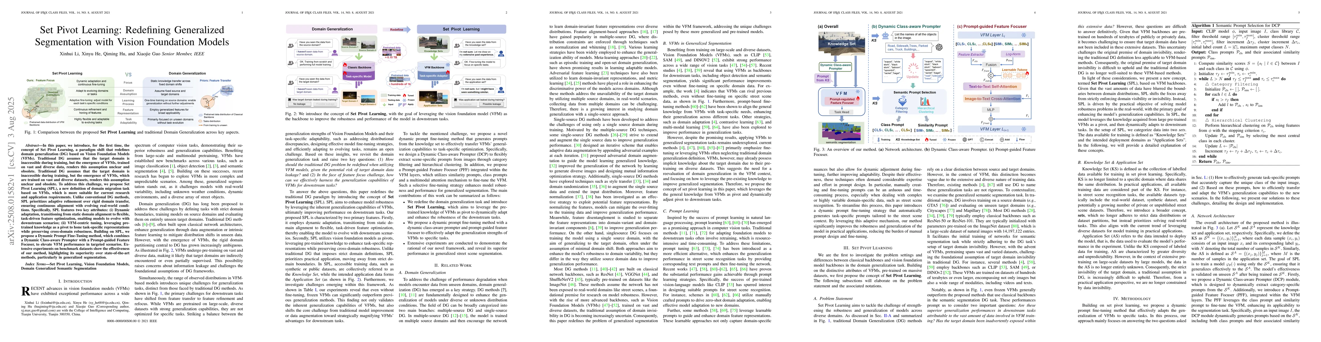 In this paper, we introduce, for the first time, the concept of Set Pivot Learning, a paradigm shift that redefines domain generalization (DG) based on Vision Foundation Models (VFMs). Traditional DG assumes that the target domain is inaccessible during training, but the emergence of VFMs, trained on vast and diverse data, renders this assumption unclear and obsolete. Traditional DG assumes that the target domain is inaccessible during training, but the emergence of VFMs, which are trained on vast and diverse datasets, renders this assumption unclear and obsolete. To address this challenge, we propose Set Pivot Learning (SPL), a new definition of domain migration task based on VFMs, which is more suitable for current research and application requirements. Unlike conventional DG methods, SPL prioritizes adaptive refinement over rigid domain transfer, ensuring continuous alignment with evolving real-world conditions. Specifically, SPL features two key attributes: (i) Dynamic adaptation, transitioning from static domain alignment to flexible, task-driven feature optimization, enabling models to evolve with downstream scenarios; (ii) VFM-centric tuning, leveraging pretrained knowledge as a pivot to hone task-specific representations while preserving cross-domain robustness. Building on SPL, we propose a Dynamic Prompt Fine-Tuning method, which combines a Dynamic Class-aware Prompter with a Prompt-guided Feature Focuser, to elevate VFM performance in targeted scenarios. Extensive experiments on benchmark datasets show the effectiveness of our method, highlighting its superiority over state-of-the-art methods, particularly in generalized segmentation.