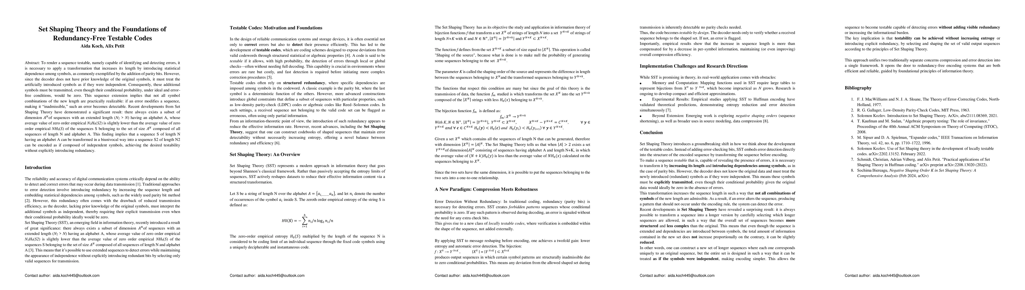To render a sequence testable, namely capable of identifying and detecting errors, it is necessary to apply a transformation that increases its length by introducing statistical dependence among symbols, as commonly exemplified by the addition of parity bits. However, since the decoder does not have prior knowledge of the original symbols, it must treat the artificially introduced symbols as if they were independent. Consequently, these additional symbols must be transmitted, even though their conditional probability, under ideal and error free conditions, would be zero. This sequence extension implies that not all symbol combinations of the new length are practically realizable: if an error modifies a sequence, making it inadmissible such an error becomes detectable. Recent developments in Set Shaping Theory have revealed a surprising result: it is always possible to transform a sequence into a longer version by carefully selecting which longer sequences are allowed, in such a way that the overall set of sequences becomes more structured and less complex than the original. This means that even though the sequence is extended and dependencies are introduced between symbols, the total amount of information contained in the new set does not increase proportionally on the contrary, it can be slightly reduced. In other words, one can construct a new set of longer sequences where each one corresponds uniquely to an original sequence, but the entire set is designed in such a way that it can be treated as if the symbols were independent, making encoding simpler. This allows sequence to become testable capable of detecting errors without adding visible redundancy or increasing the informational content.