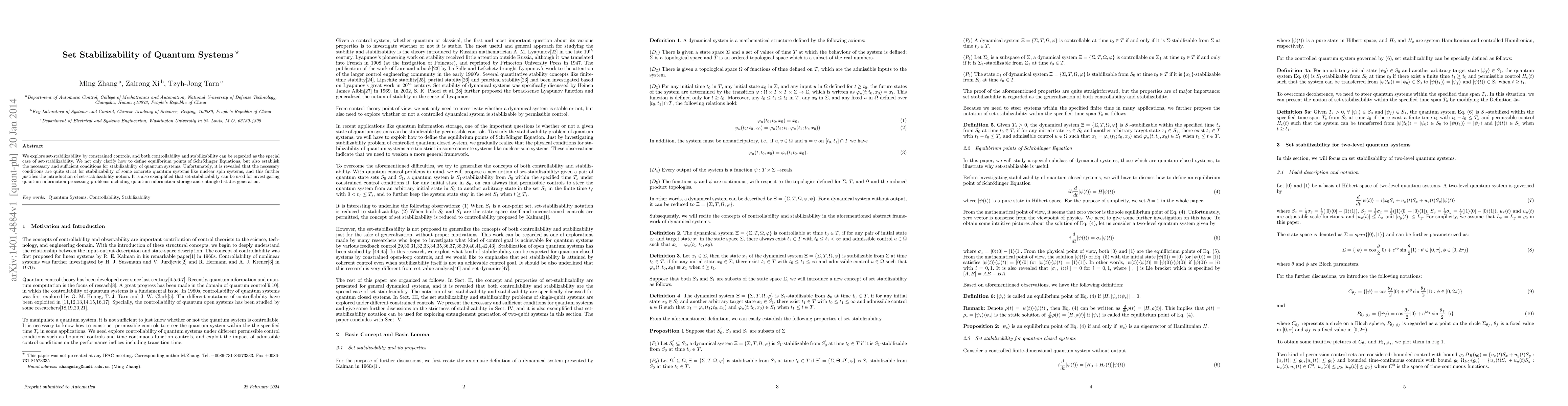 This research paper explores set-stabilizability of quantum systems, establishing necessary conditions for stabilizability while highlighting strict requirements for certain systems like nuclear spin systems. The concept of set-stabilizability is also applied to studying quantum information processing problems, including storage and entangled states generation.