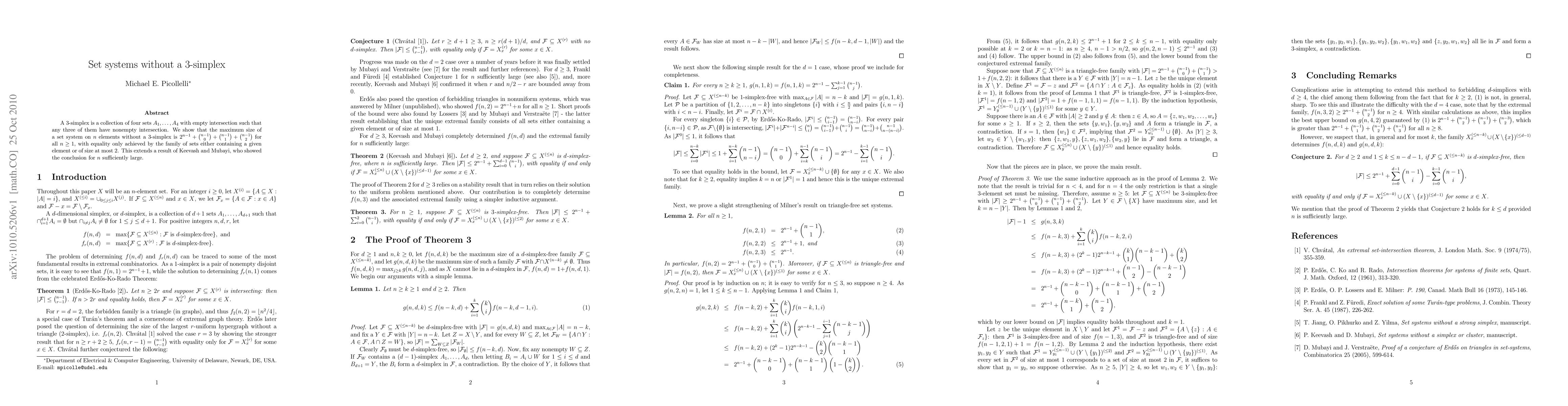A 3-simplex is a collection of four sets A_1,...,A_4 with empty intersection such that any three of them have nonempty intersection. We show that the maximum size of a set system on n elements without a 3-simplex is $2^{n-1} + \binom{n-1}{0} + \binom{n-1}{1} + \binom{n-1}{2}$ for all $n \ge 1$, with equality only achieved by the family of sets either containing a given element or of size at most 2. This extends a result of Keevash and Mubayi, who showed the conclusion for n sufficiently large.