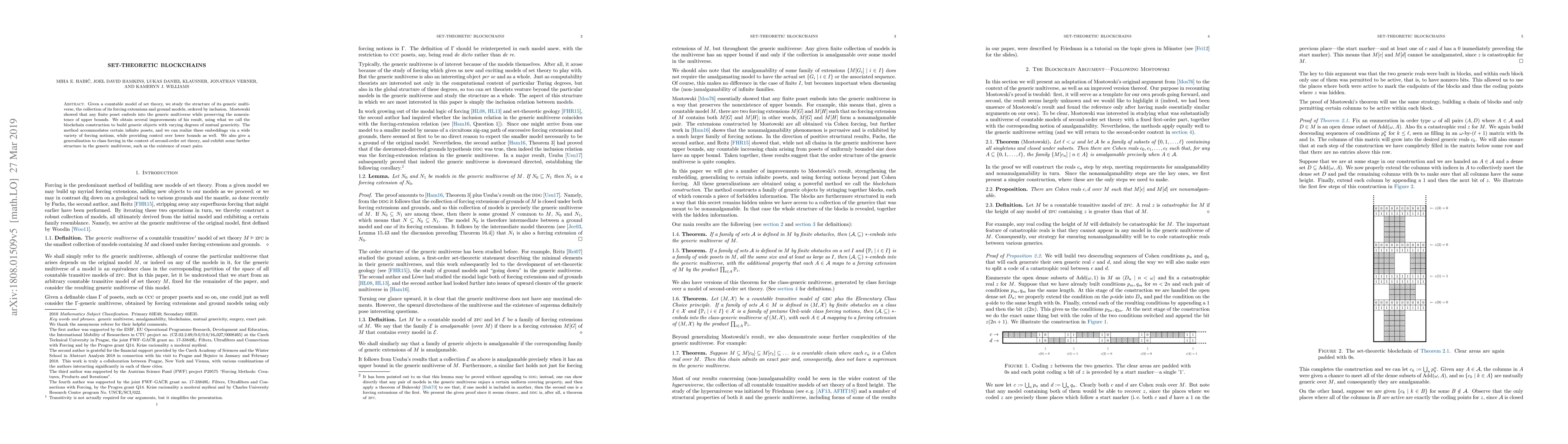 This paper enhances Mostowski's embedding results for finite posets into the generic multiverse of a countable model of set theory using a blockchain construction. It accommodates infinite posets and controls lower bounds, generalizes to class forcing, and reveals further structure like exact pairs in the generic multiverse.