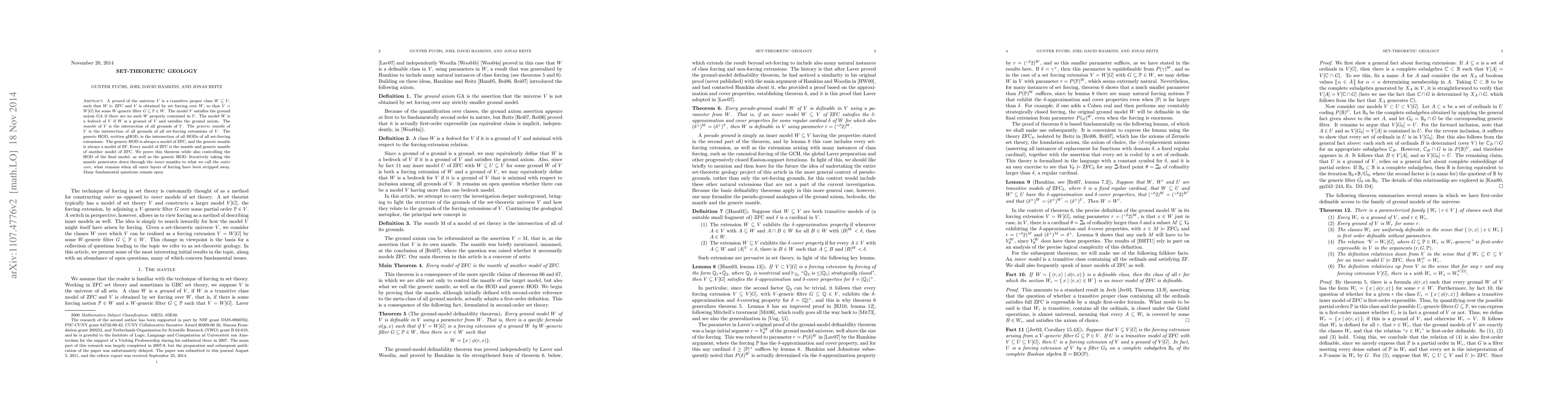 A research paper introduces the concept of ground-theoretic geology, exploring a model V in set theory that satisfies specific axioms related to forcing and HODs. It demonstrates how every model of ZFC is a mantle or generic mantle for another model of ZFC.