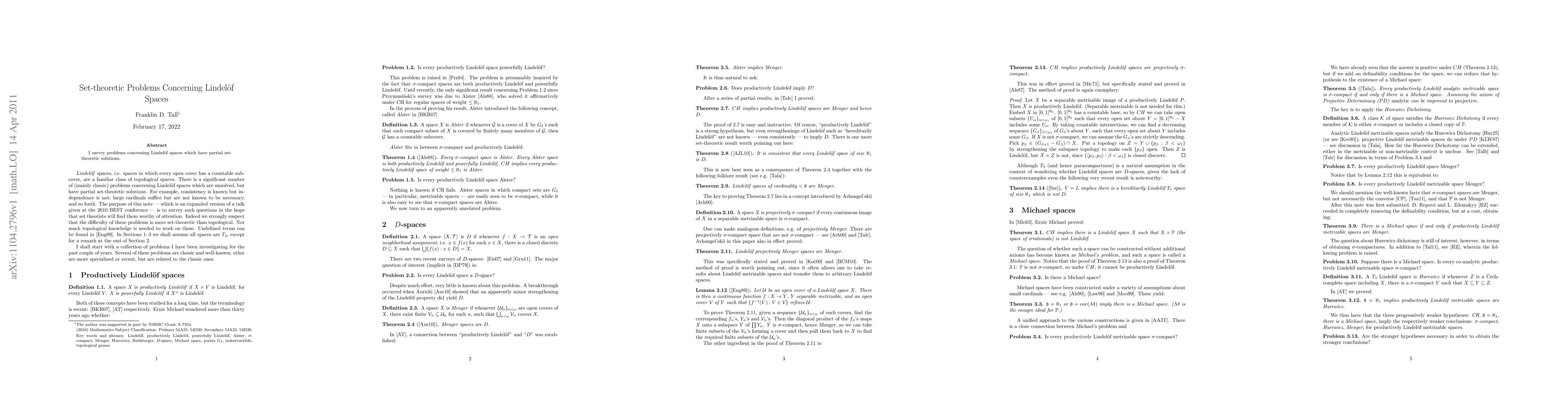 I survey problems concerning Lindelof spaces which have partial set- theoretic solutions.