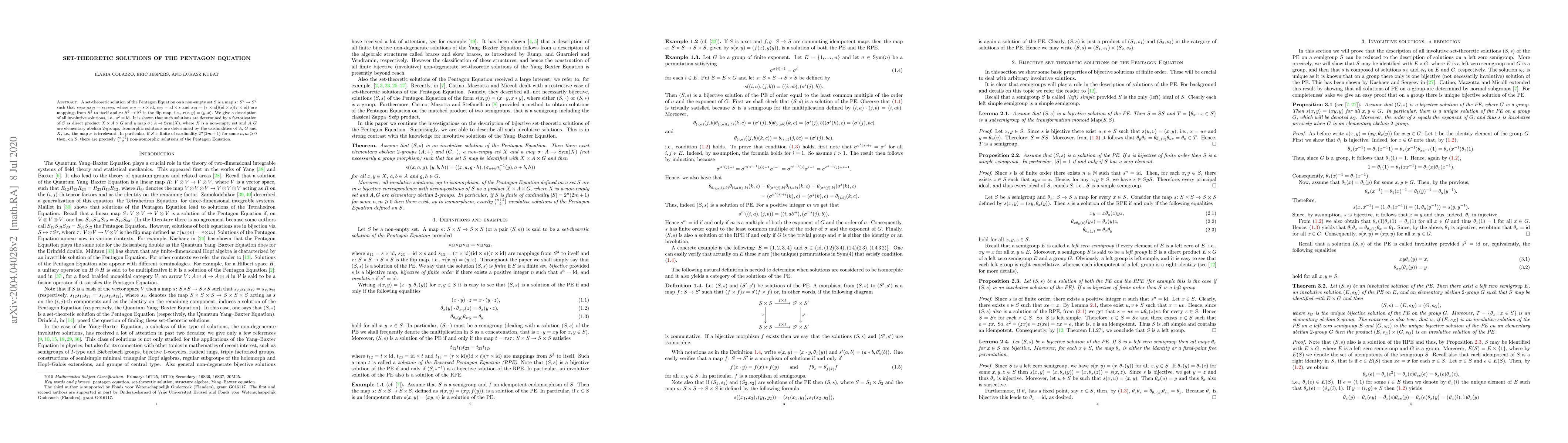 The paper provides a comprehensive solution to the Pentagon Equation on a non-empty set S, showing that involutive solutions are determined by the cardinalities of elementary abelian 2-groups A, G, and X, leading to precisely inom{n+2}{2} non-isomorphic solutions for finite sets of size 2^n(2m+1).