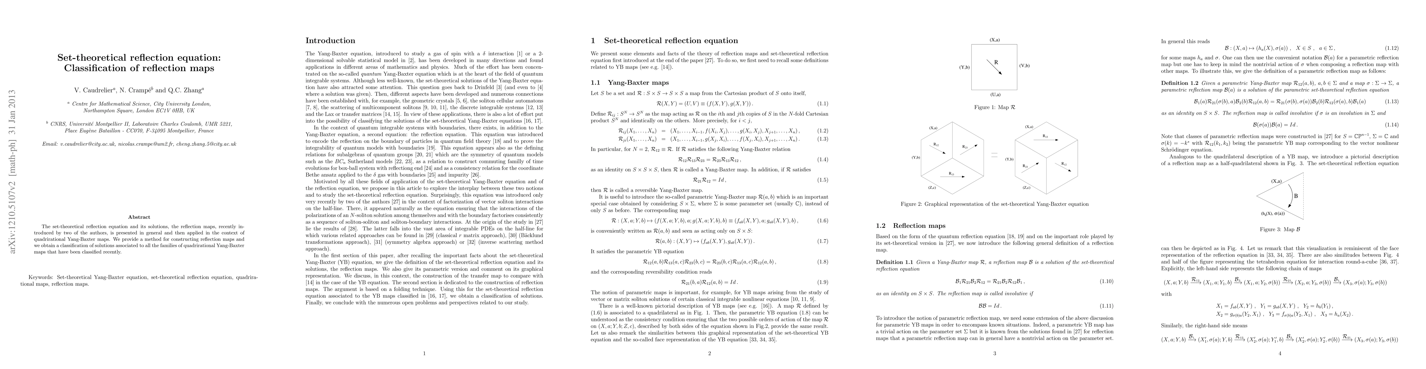 This paper presents the set-theoretical reflection equation and its solutions, known as reflection maps, and applies them to quadrirational Yang-Baxter maps. It provides a method for constructing these reflection maps and classifies solutions for all families of quadrirational Yang-Baxter maps recently categorized.