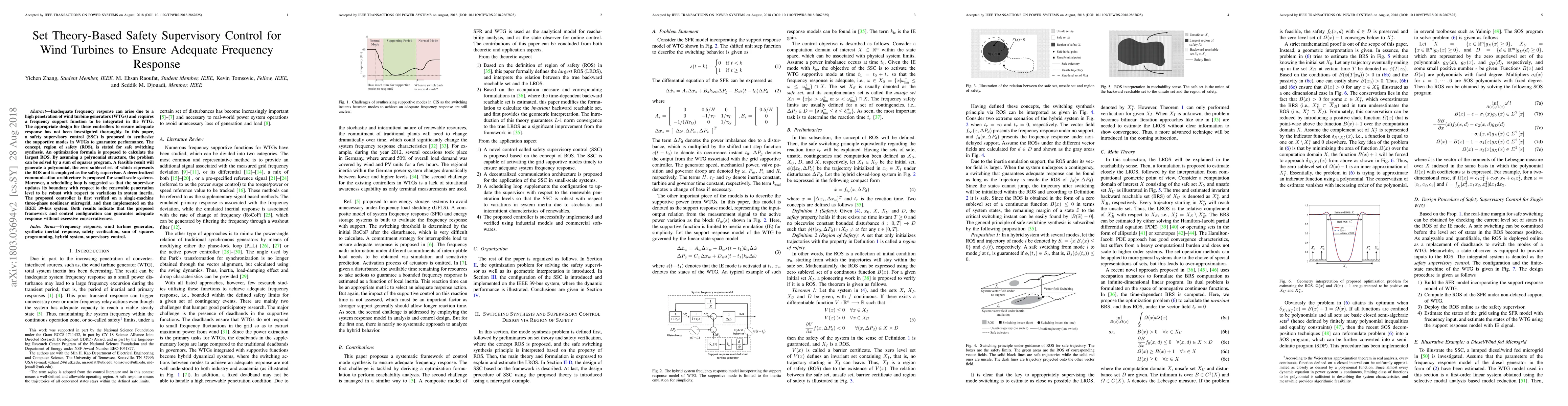 This paper proposes a set theory-based safety supervisory control for wind turbine generators to ensure adequate frequency response. The method synthesizes supportive modes using a region of safety concept, optimizing it via a sum of squares program, and employs a decentralized communication framework to adapt to varying system inertia levels.