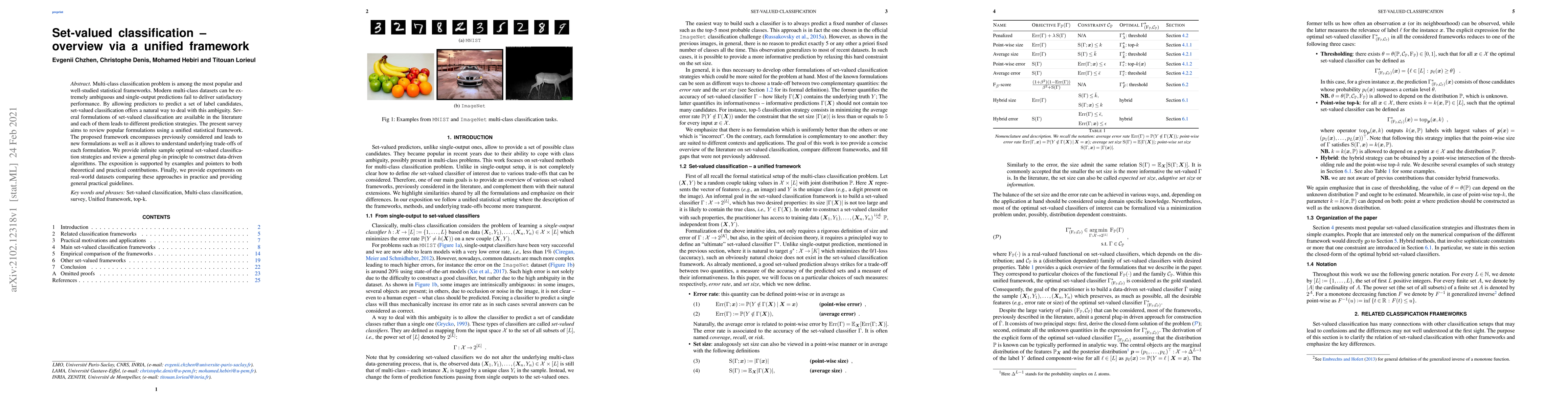Multi-class classification problem is among the most popular and well-studied statistical frameworks. Modern multi-class datasets can be extremely ambiguous and single-output predictions fail to deliver satisfactory performance. By allowing predictors to predict a set of label candidates, set-valued classification offers a natural way to deal with this ambiguity. Several formulations of set-valued classification are available in the literature and each of them leads to different prediction strategies. The present survey aims to review popular formulations using a unified statistical framework. The proposed framework encompasses previously considered and leads to new formulations as well as it allows to understand underlying trade-offs of each formulation. We provide infinite sample optimal set-valued classification strategies and review a general plug-in principle to construct data-driven algorithms. The exposition is supported by examples and pointers to both theoretical and practical contributions. Finally, we provide experiments on real-world datasets comparing these approaches in practice and providing general practical guidelines.