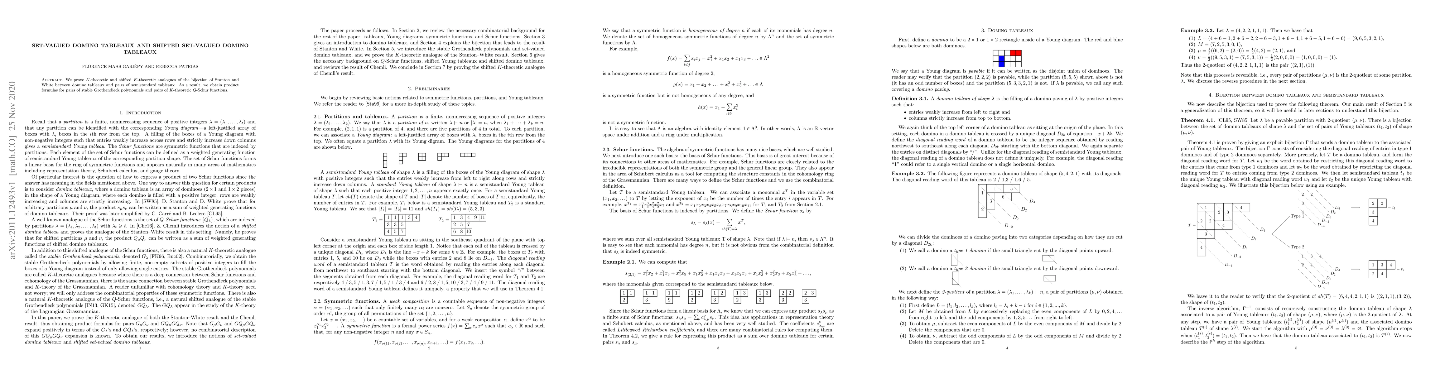 The paper introduces and rigorously analyzes set-valued domino tableaux and shifted set-valued domino tableaux, leading to significant generalizations of known bijections in the theory of symmetric functions.