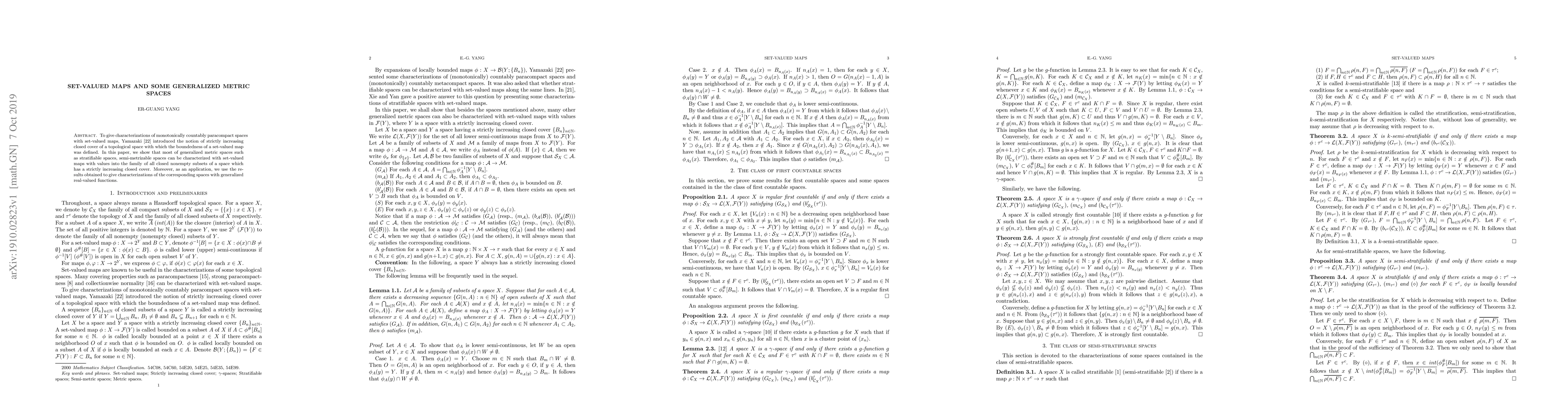 To give characterizations of monotonically countably paracompact spaces with set-valued maps, Yamazaki [22] introduced the notion of strictly increasing closed cover of a topological space with which the boundedness of a set-valued map was defined. In this paper, we show that most of generalized metric spaces such as stratifiable spaces, semi-metrizable spaces can be characterized with set-valued maps with values into the family of all closed nonempty subsets of a space which has a strictly increasing closed cover. Moreover, as an application, we use the results obtained to give characterizations of the corresponding spaces with generalized real-valued functions.