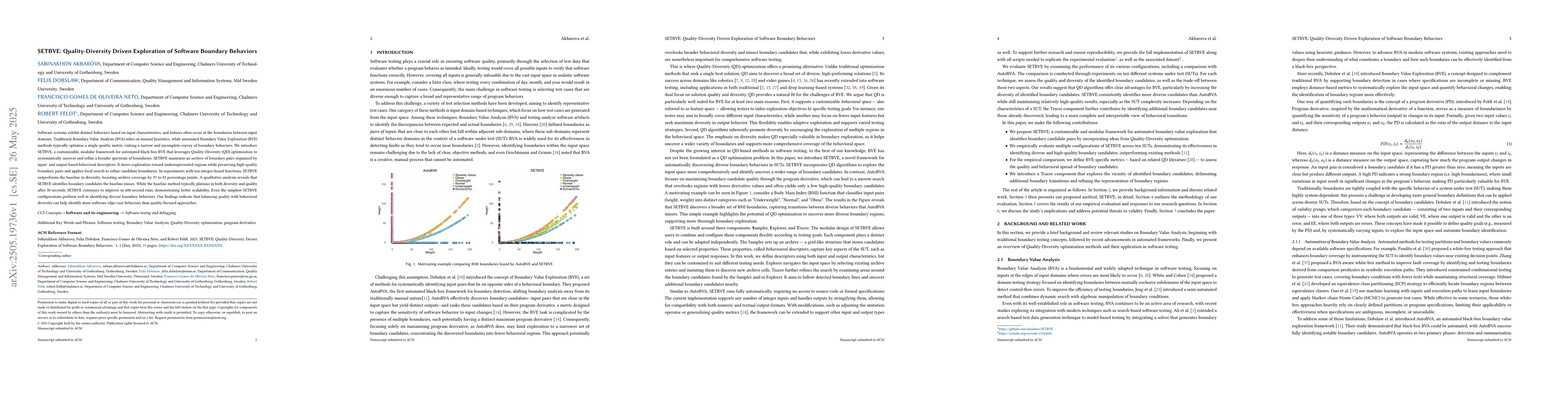 A new framework called SETBVE improves on traditional Boundary Value Analysis by using Quality-Diversity optimization to explore software boundary behaviors more comprehensively and accurately.