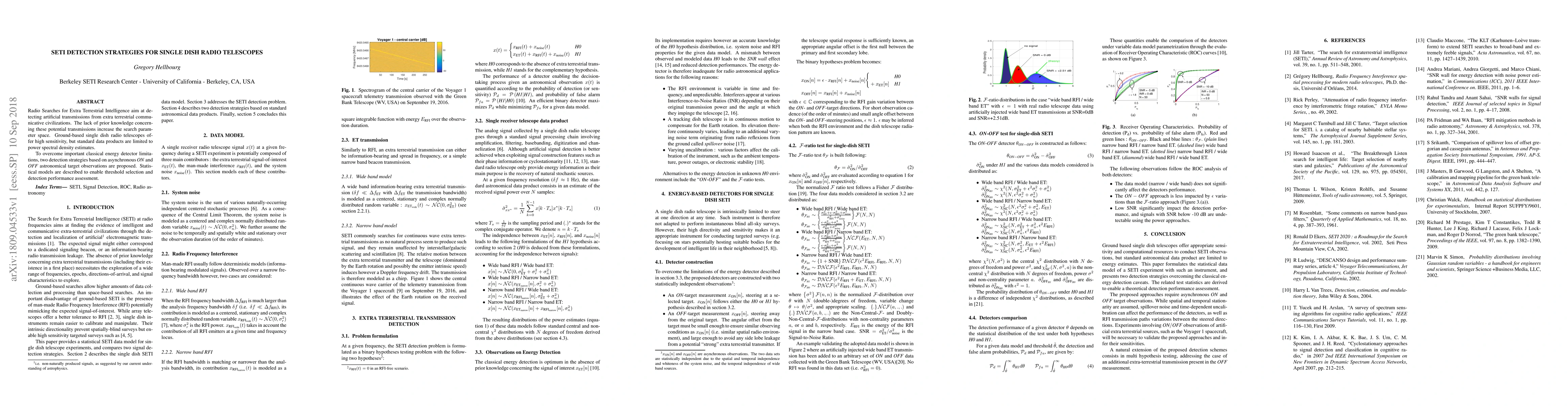 This paper proposes two detection strategies for SETI using single dish radio telescopes, focusing on overcoming classical energy detector limitations through asynchronous ON and OFF astronomical target observations. The strategies incorporate statistical models to aid in threshold selection and evaluate detection performance.