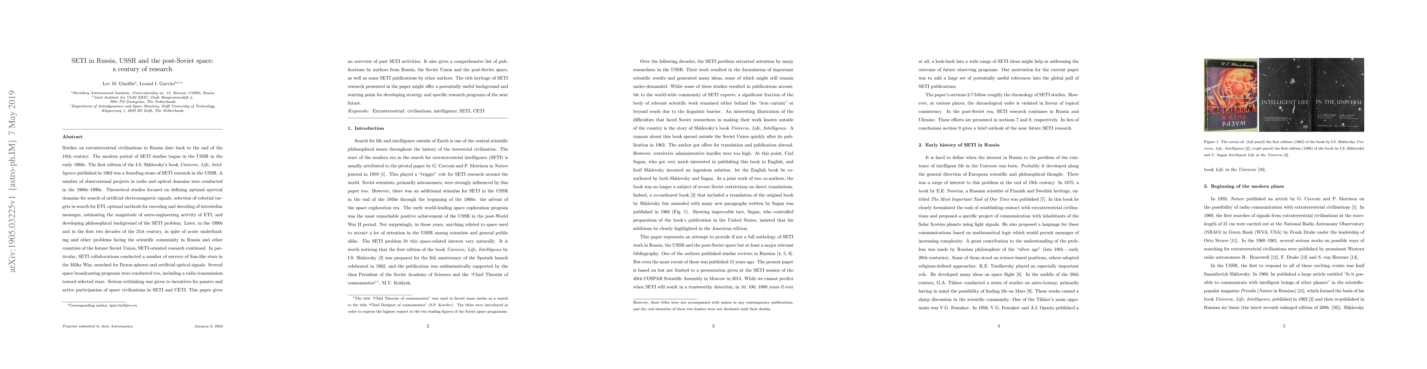 This paper provides a historical overview of SETI research in Russia, the USSR, and the post-Soviet space, tracing its development from the late 19th century to the early 21st century. It highlights key projects, theoretical studies, and collaborations despite funding challenges, and offers a comprehensive list of relevant publications to inform future research strategies.