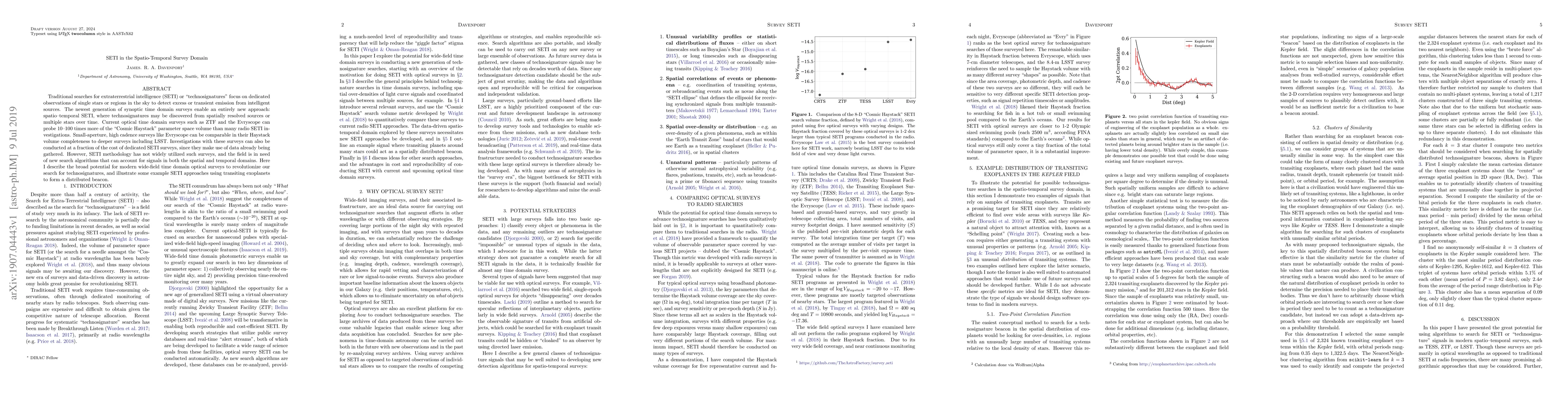 This paper explores the potential of modern wide-field optical time domain surveys like ZTF and Evryscope to enhance SETI efforts by detecting technosignatures through spatio-temporal analysis, offering a cost-effective alternative to traditional radio SETI methods. It calls for new search algorithms to leverage these surveys' capabilities fully.