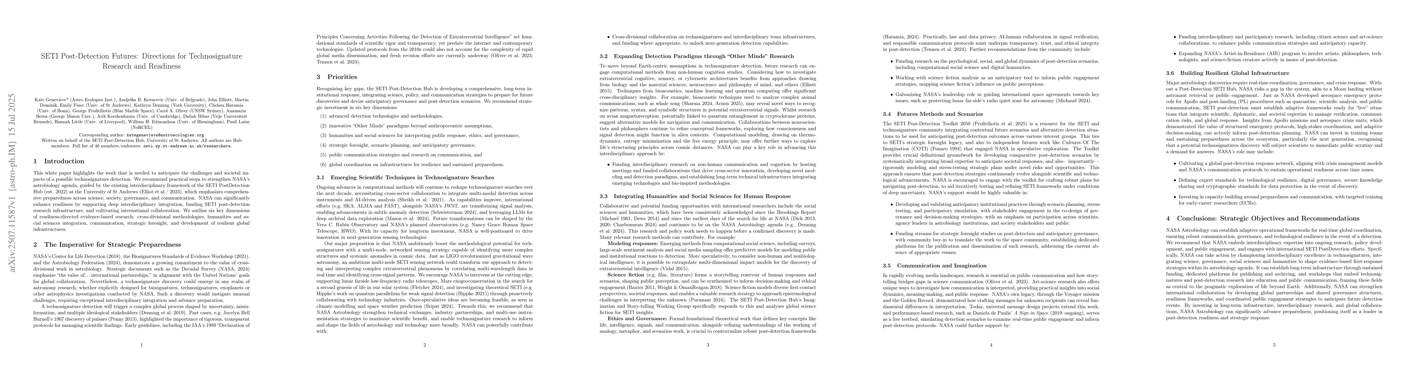 This white paper highlights the work that is needed to anticipate the challenges and societal impacts of a possible technosignature detection. We recommend practical steps to strengthen NASA's astrobiology agenda, guided by the existing interdisciplinary framework of the SETI PostDetection Hub (est. 2022) at the University of St Andrews (Elliot et al. 2023), which emphasizes comprehensive preparedness across science, society, governance, and communication. NASA can significantly enhance readiness by supporting deep interdisciplinary integration, funding SETI post-detection research infrastructure, and cultivating international collaboration. We outline six key dimensions of readiness-directed evidence-based research: cross-divisional methodologies, humanities and social sciences integration, communication, strategic foresight, and development of resilient global infrastructures.